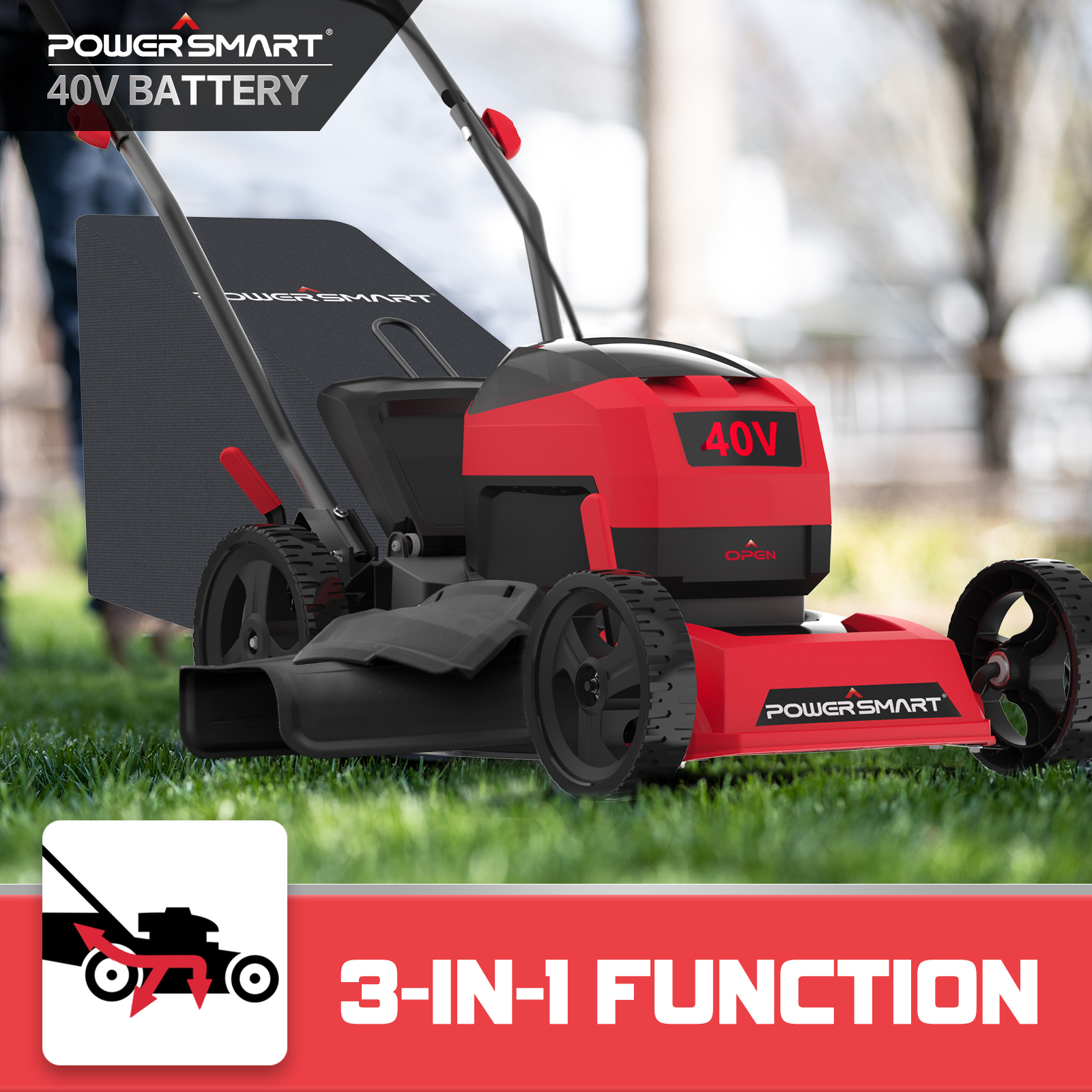 PowerSmart 40V 17-inch 3-in-1 Cordless Brushless Walk Behind Push Lawn Mower W/4.0Ah Battery and Charger .PS76418AP