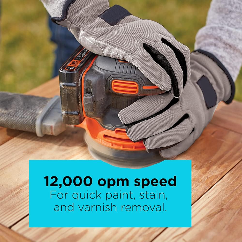 BLACK+DECKER 20V MAX Orbital Sander. Cordless. 12.000 OPM. 2 Sandpaper Sheets. Battery and Charger Included (BDCRO20C)