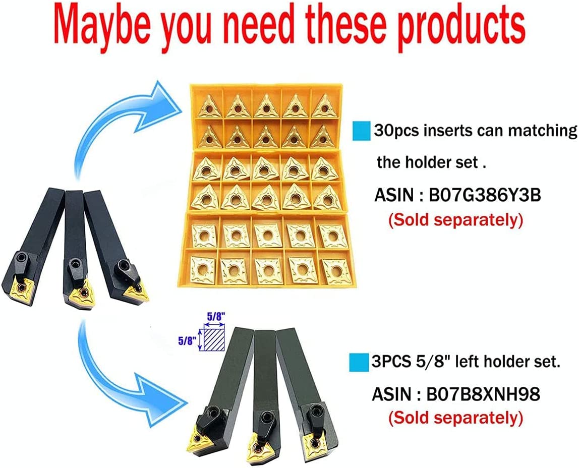 3PCS 5/8″ CNC Lathe Excircle Indexable Carbide Turning Tool Holder Bit Set MTJNR1616H16 + MWLNR1616H08 + MCLNR1616H12 with 3pcs wnmg431. cnmg431. tnmg331 Indexable Carbide Inserts (Right Cutting)