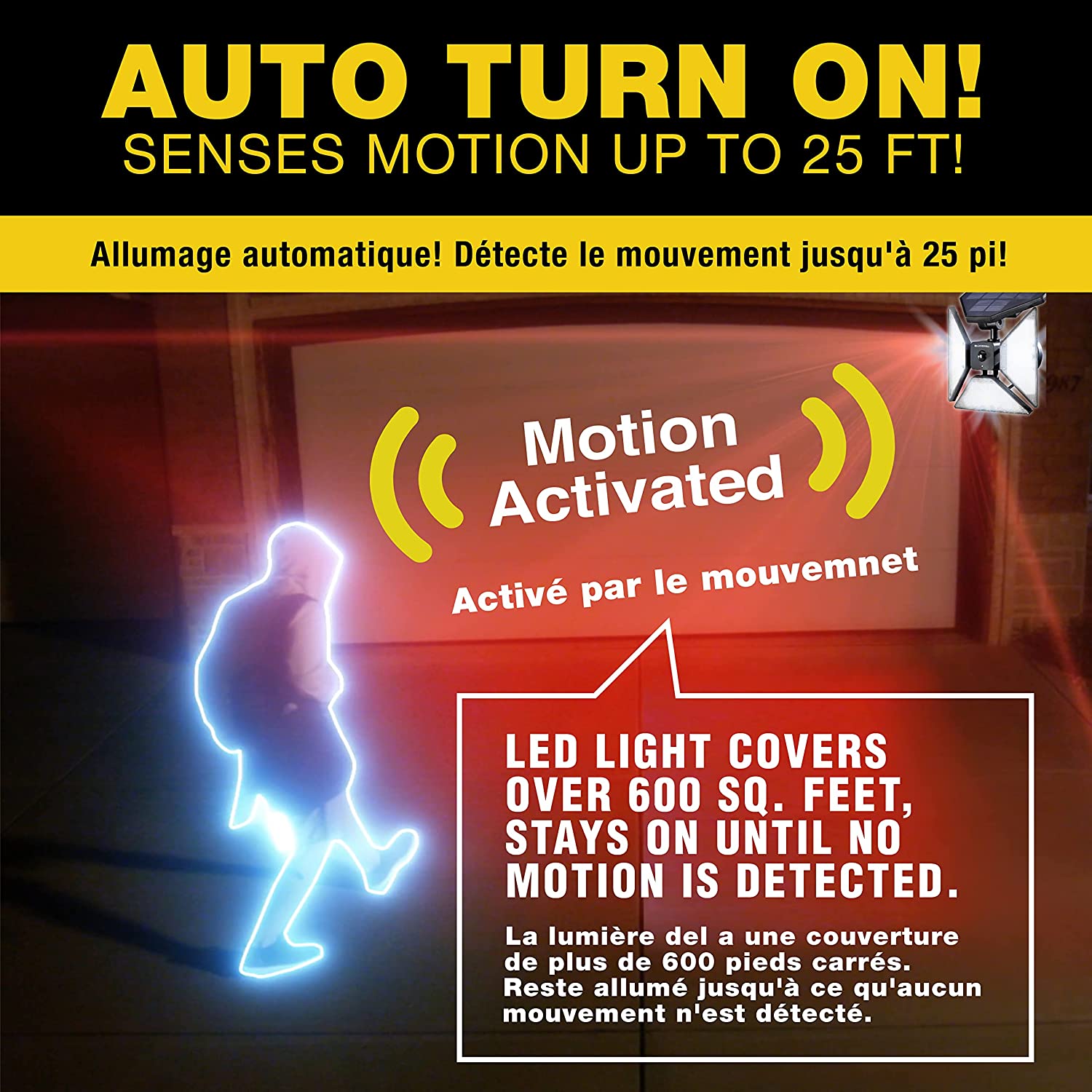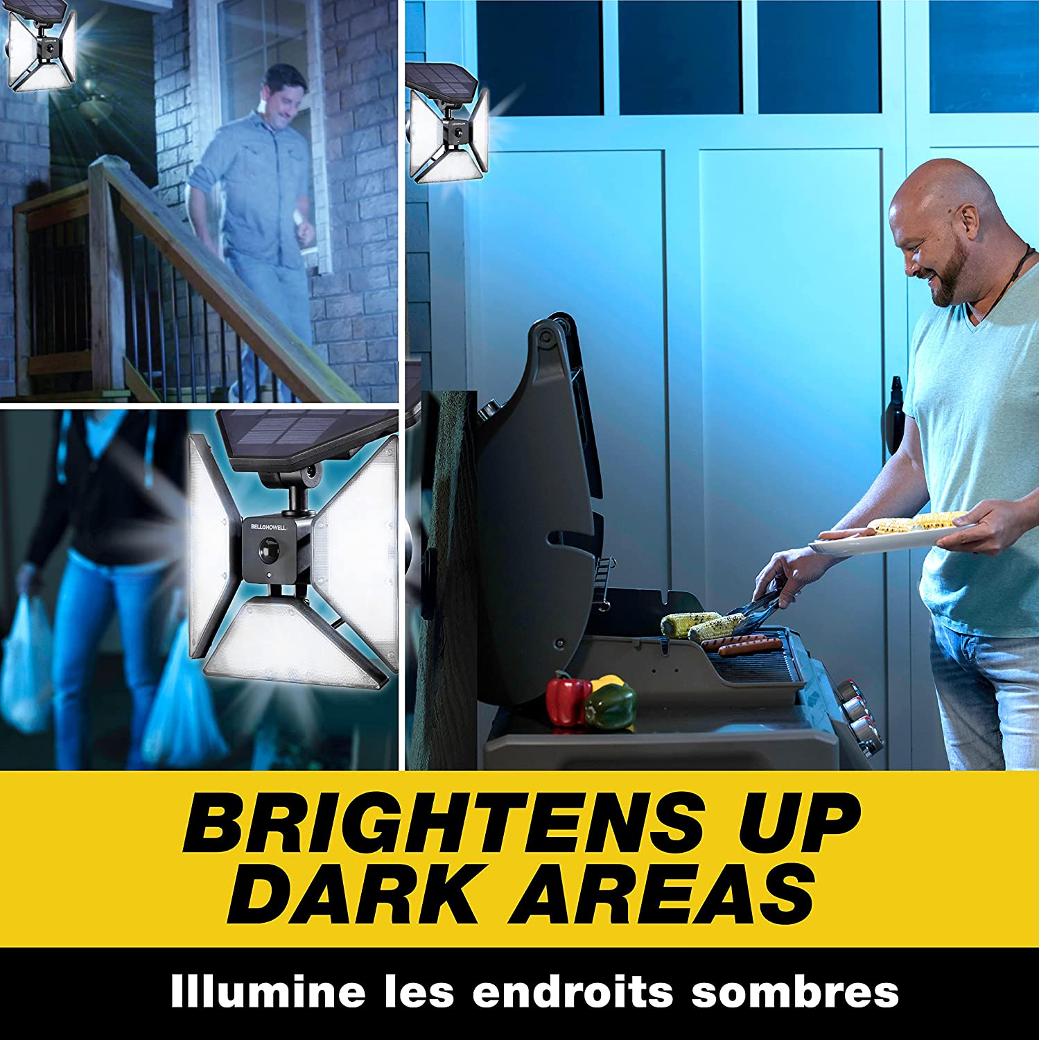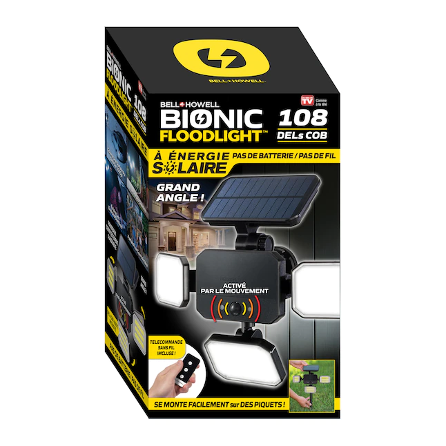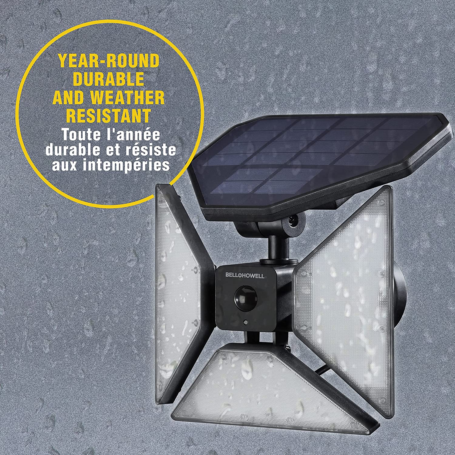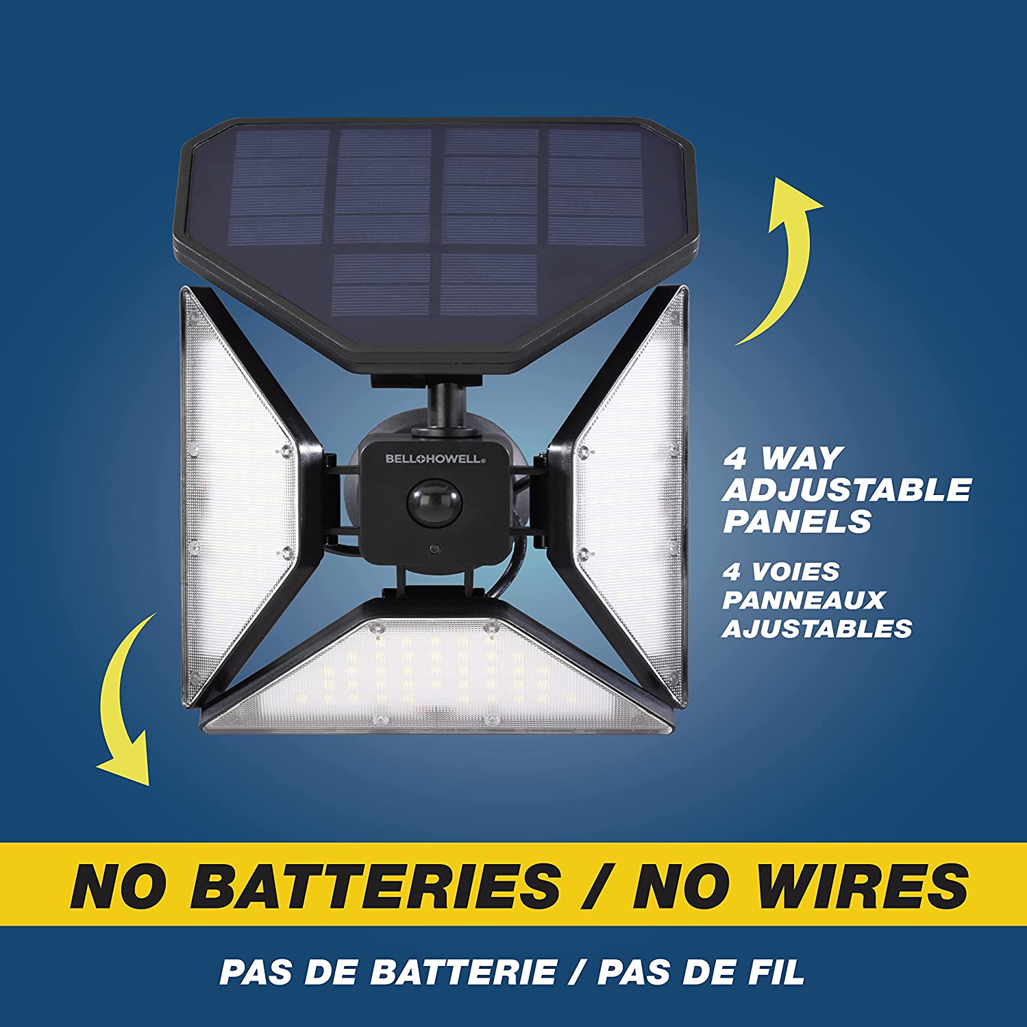 BELL + HOWELL 110-Degree 250-Lumen Black Solar LED Outdoor Motion-Activated Flood Light - Bionic Floodlight 180 Degrees Swiveling Light with Motion Sensor LED 108 High Power LED Bulbs Adjustable Panels for Garden Patio As Seen On TV