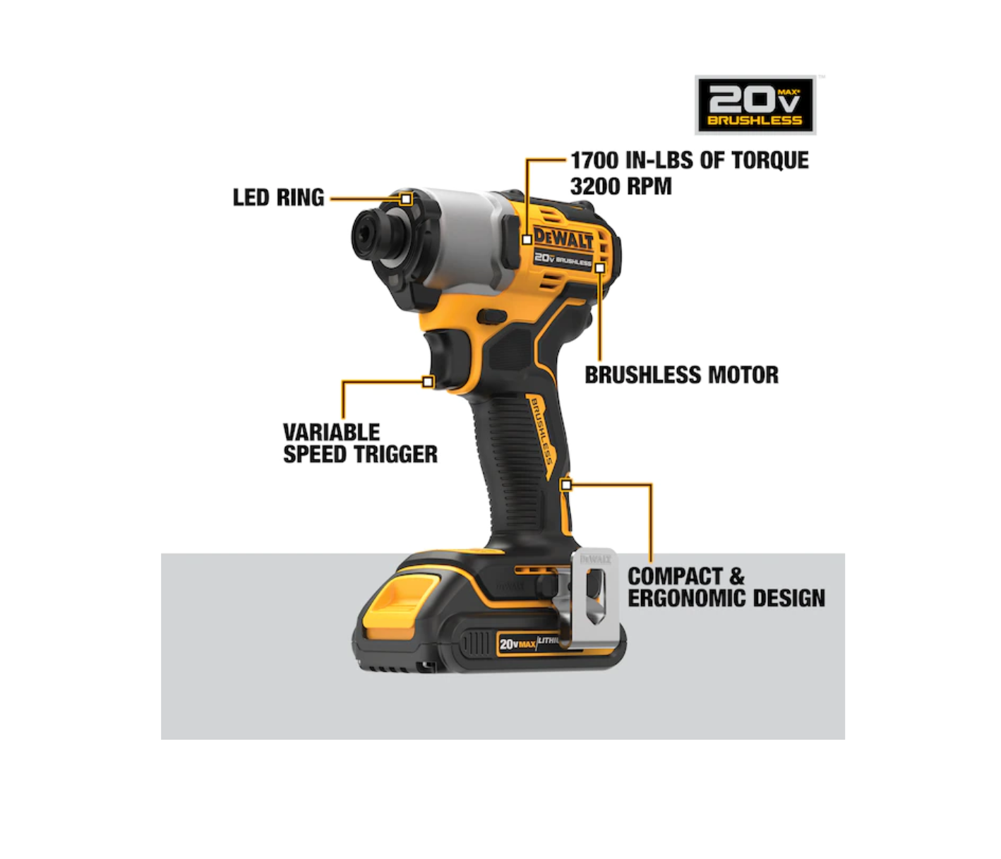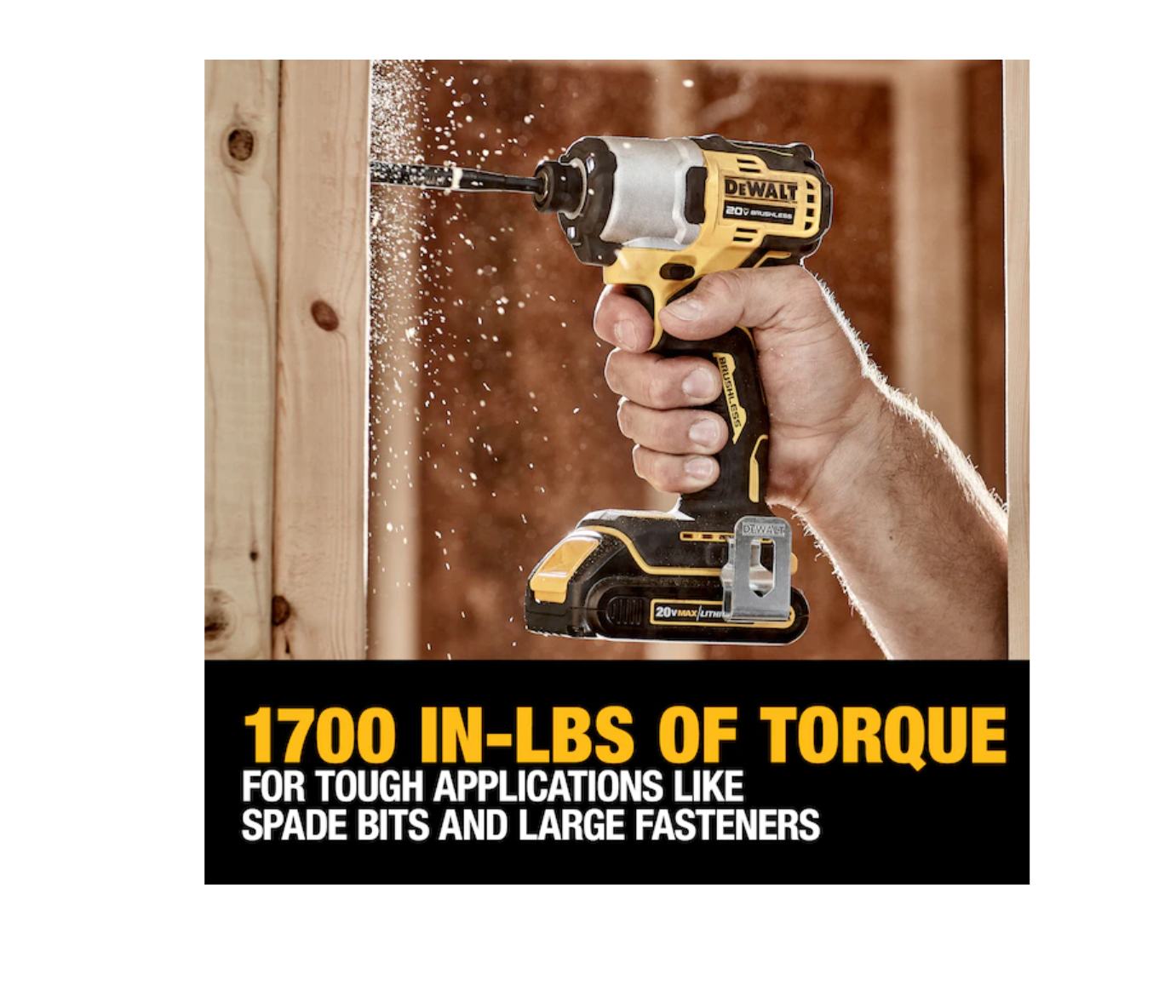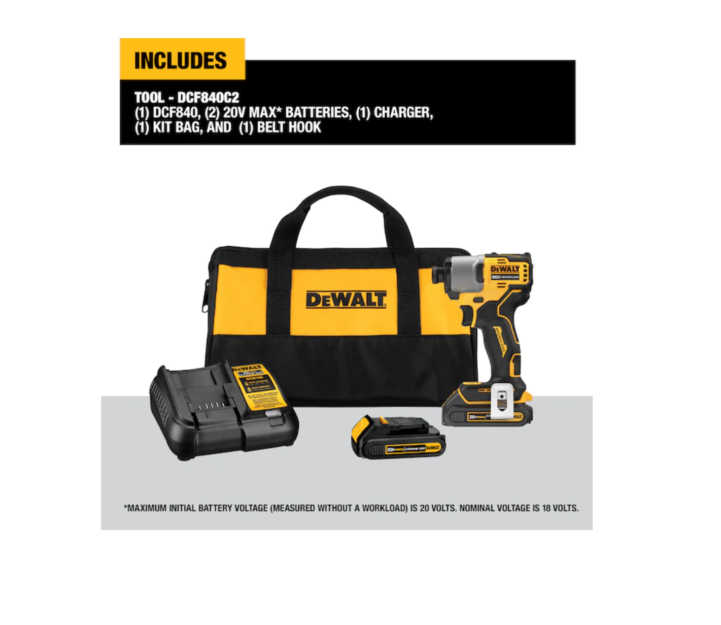 DEWALT DCF840C2 Brushless 20-volt Max 1/4-in Variable Speed Brushless Cordless Impact Driver (2-Batteries Included)