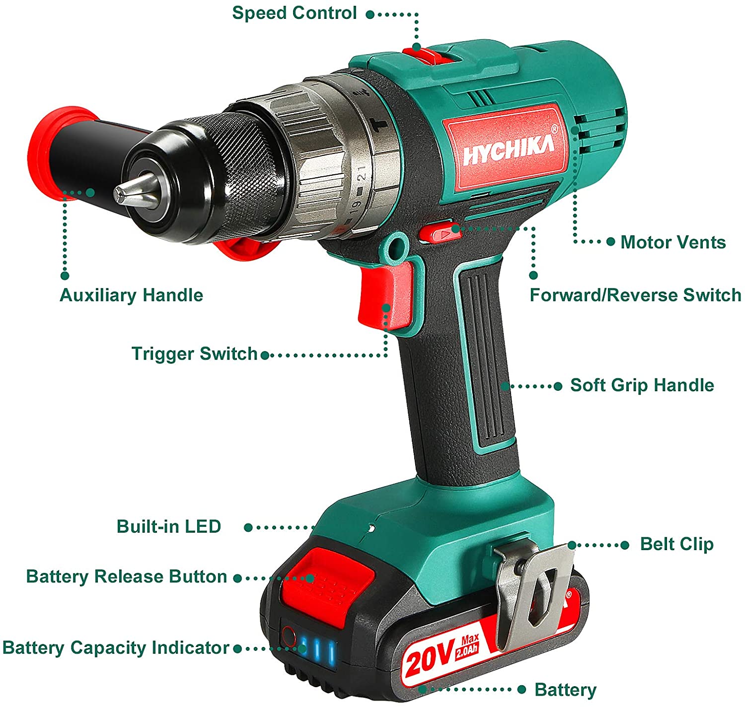 HYCHIKA 1/2-in 20-volt Max-Amp Variable Speed Cordless Hammer Drill (1-Battery Included)