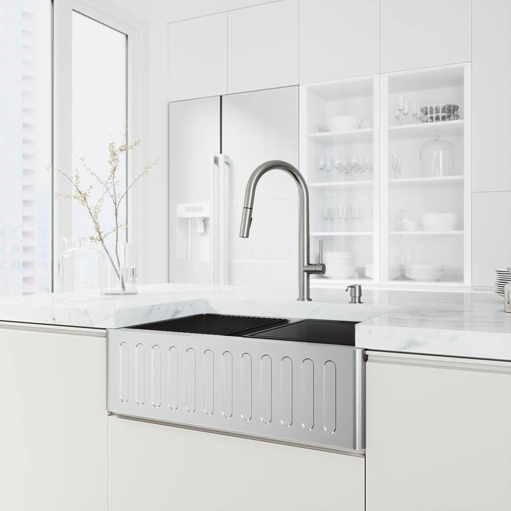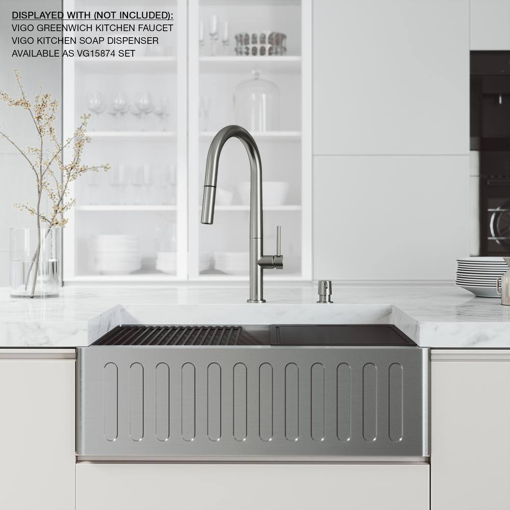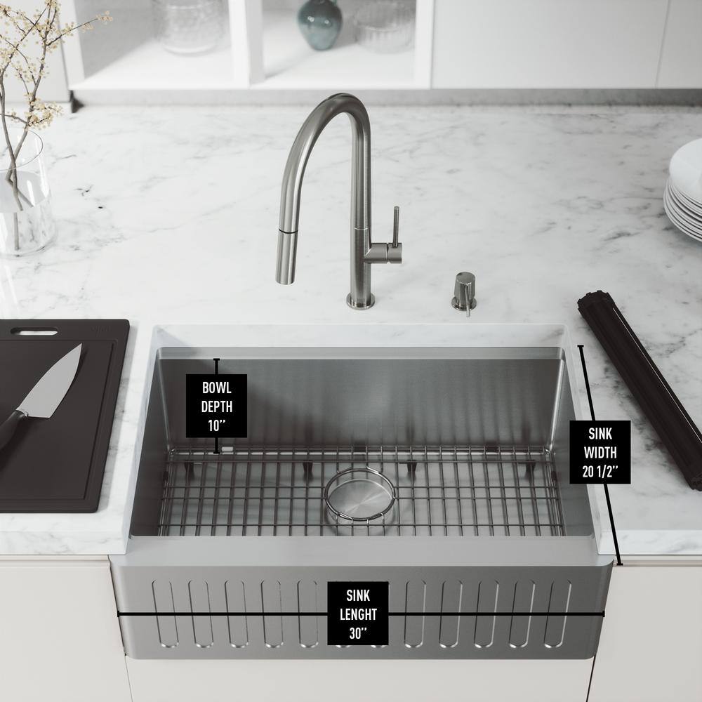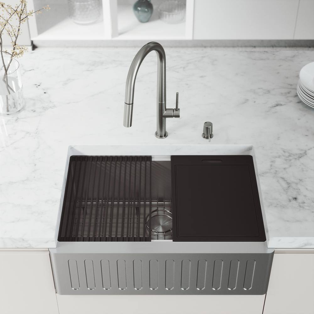 VIGO 1004816567 Oxford 30″ Single Bowl Workstation Undermount Stainless Steel Farmhouse Sink with Ledge and Accessories