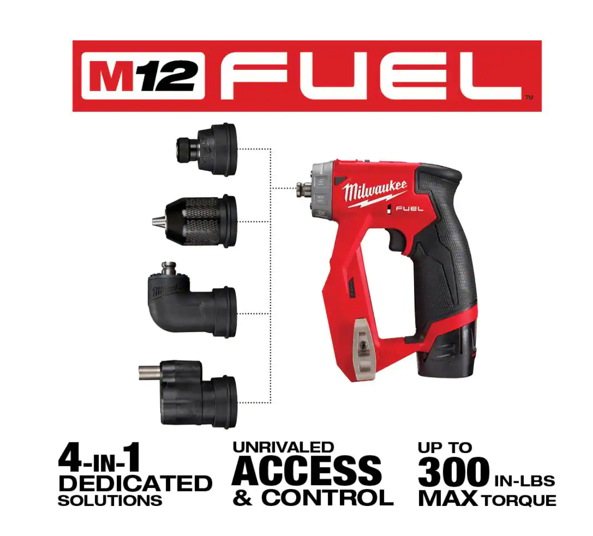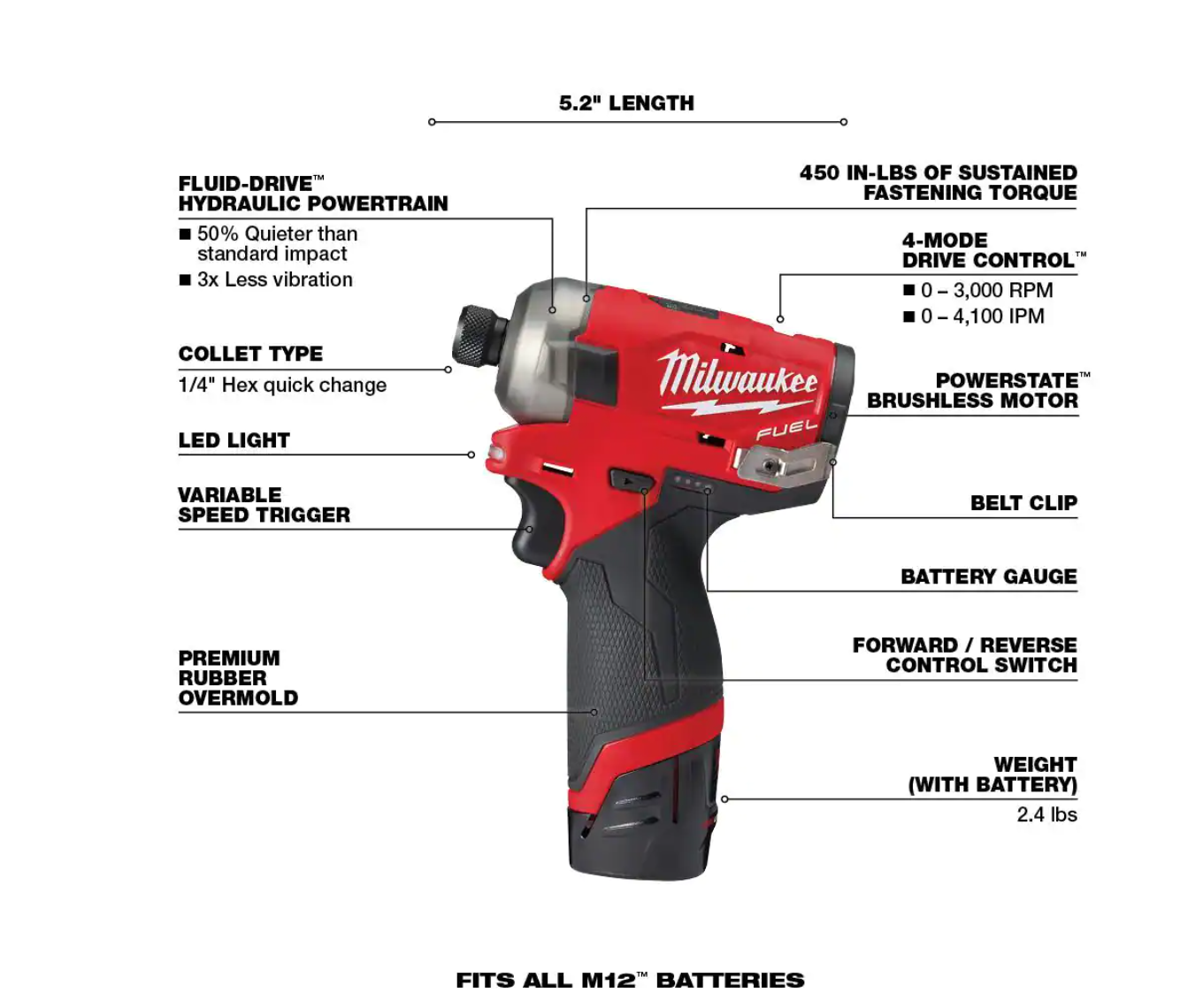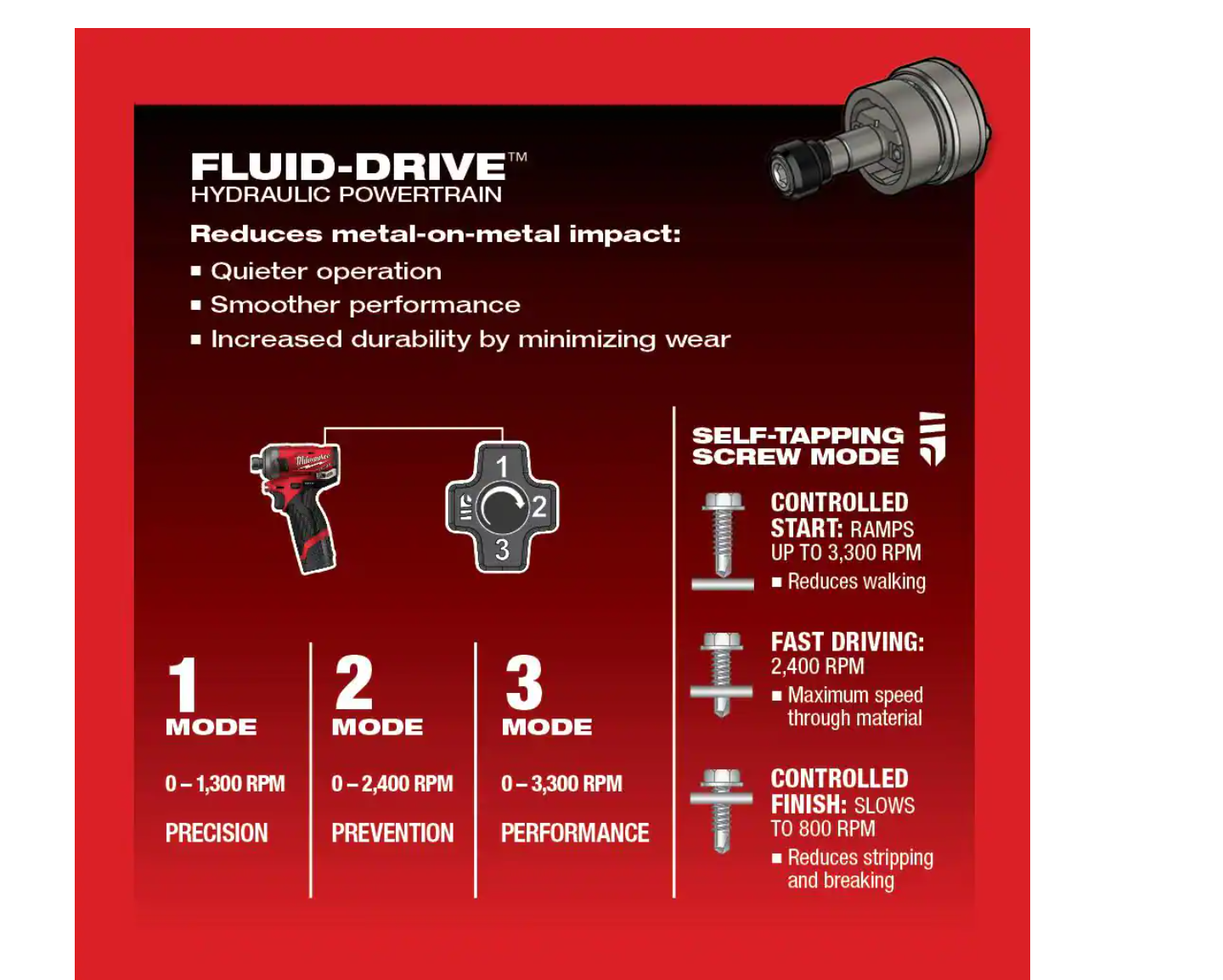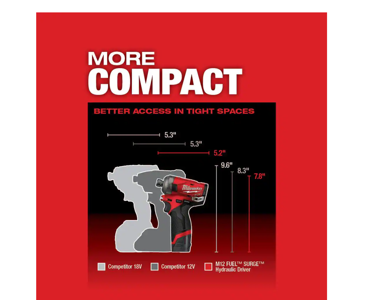Milwaukee 2551-22-2505-20 M12 FUEL 12V Li-Ion Cordless SURGE 1/4 in. Hex Impact Driver and 4-in-1 Installation 3/8 in. Drill Driver Combo Kit