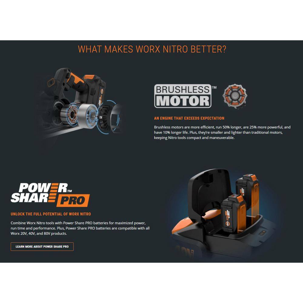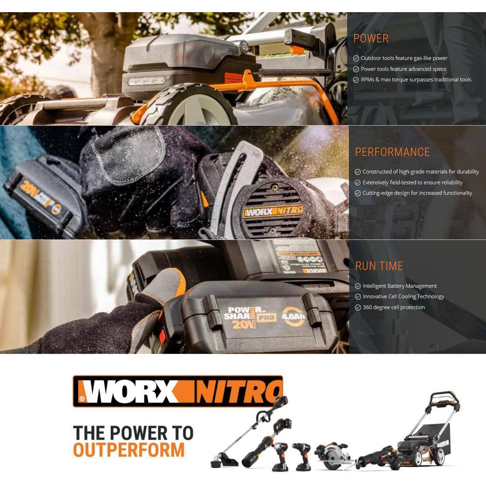Worx WG751.3 Power Share Nitro 40V Cordless 20in. 4Ah Push Mower w/Mulching /Side Discharge. Brushless (Batteries & Charger Included)