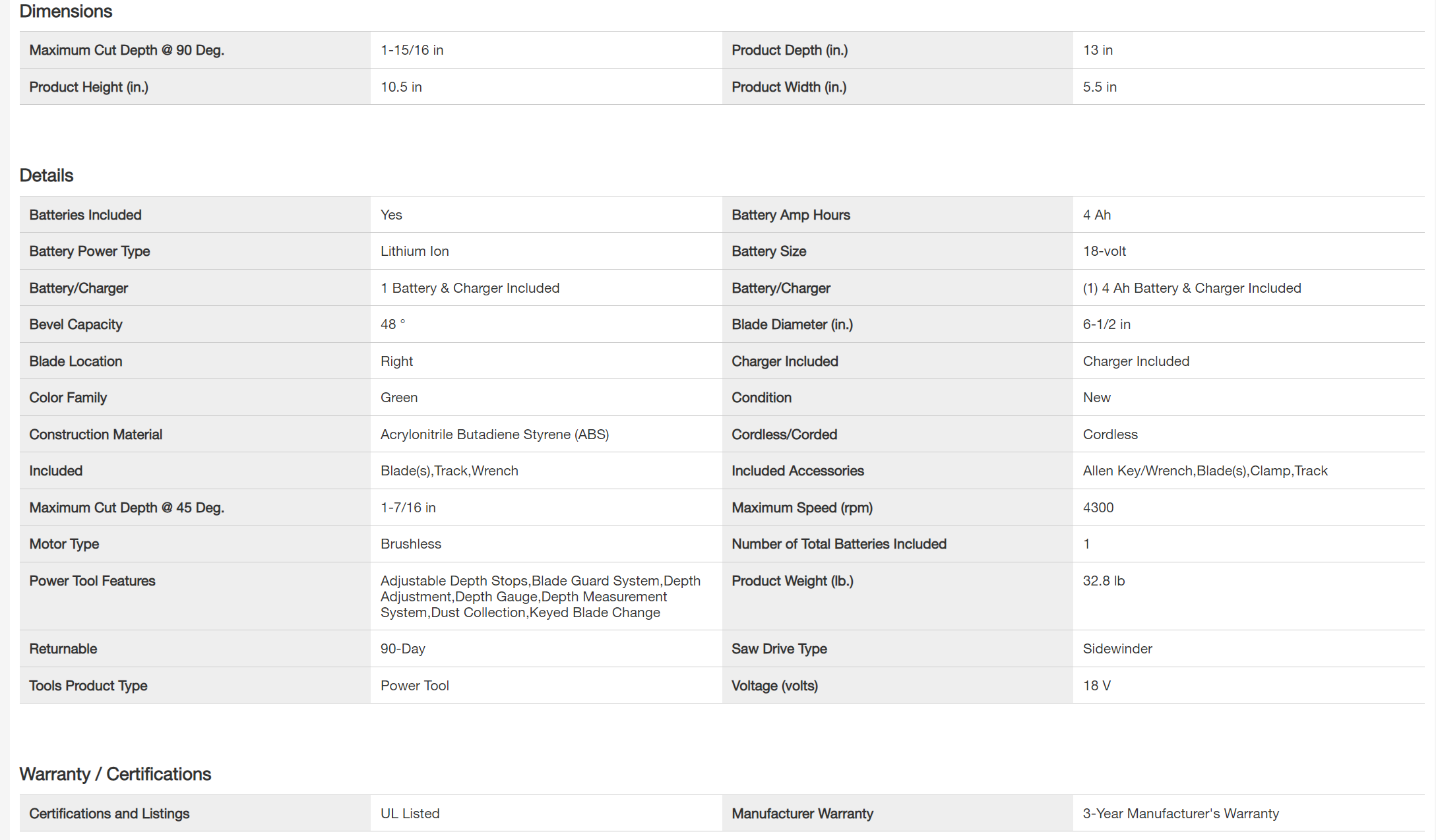 Milwaukee 2732-20-48-11-1850 M18 FUEL 18V 7-1/4 in. Lithium-Ion Brushless Cordless Circular Saw with M18 5.0 Ah Battery