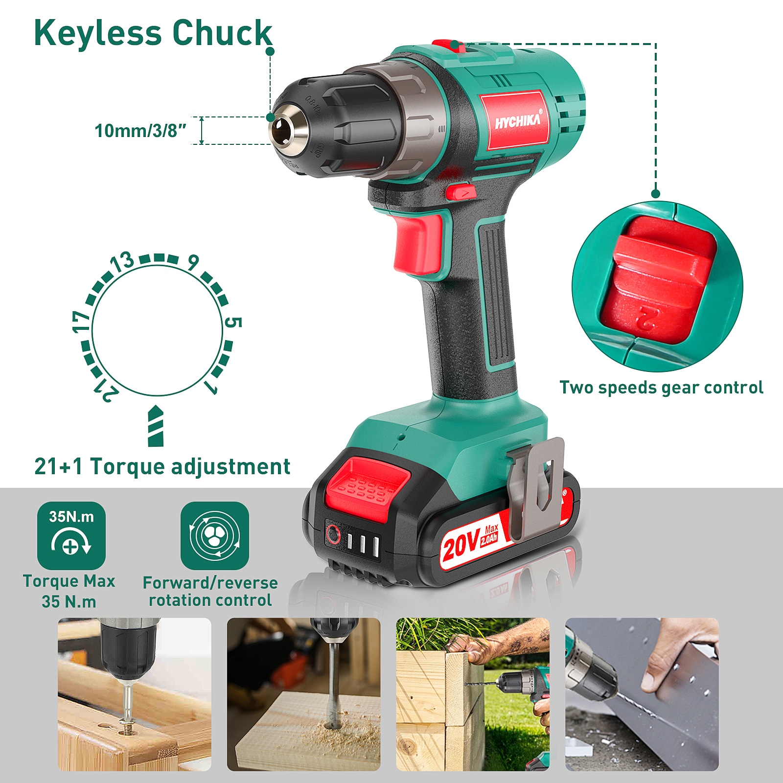 HYCHIKA 20-volt Max 3/8-in Right Angle Cordless Drill (1 Li-ion Battery Included and Charger Included)