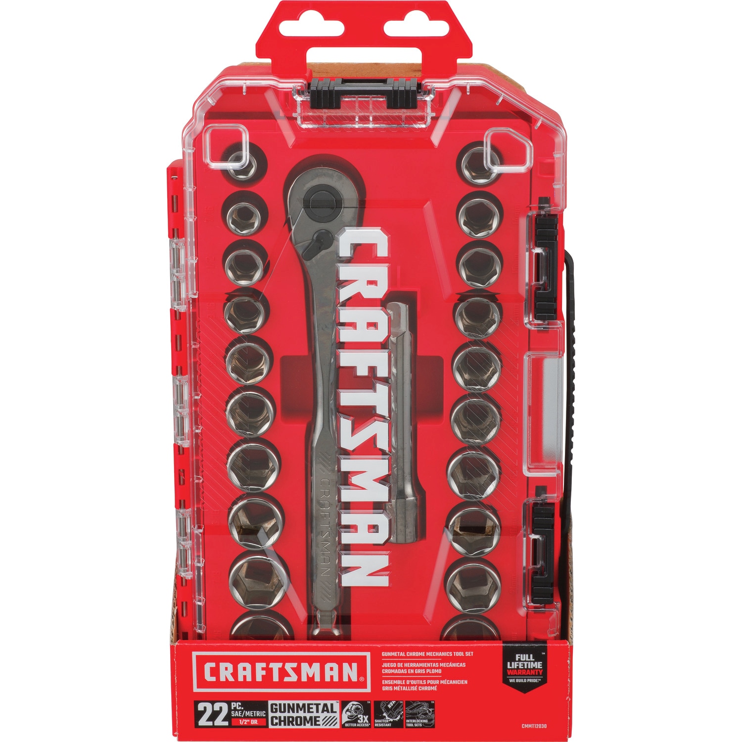 CRAFTSMAN 22-Piece Standard (SAE) and Metric Gunmetal Chrome Mechanics Tool Set with Hard Case
