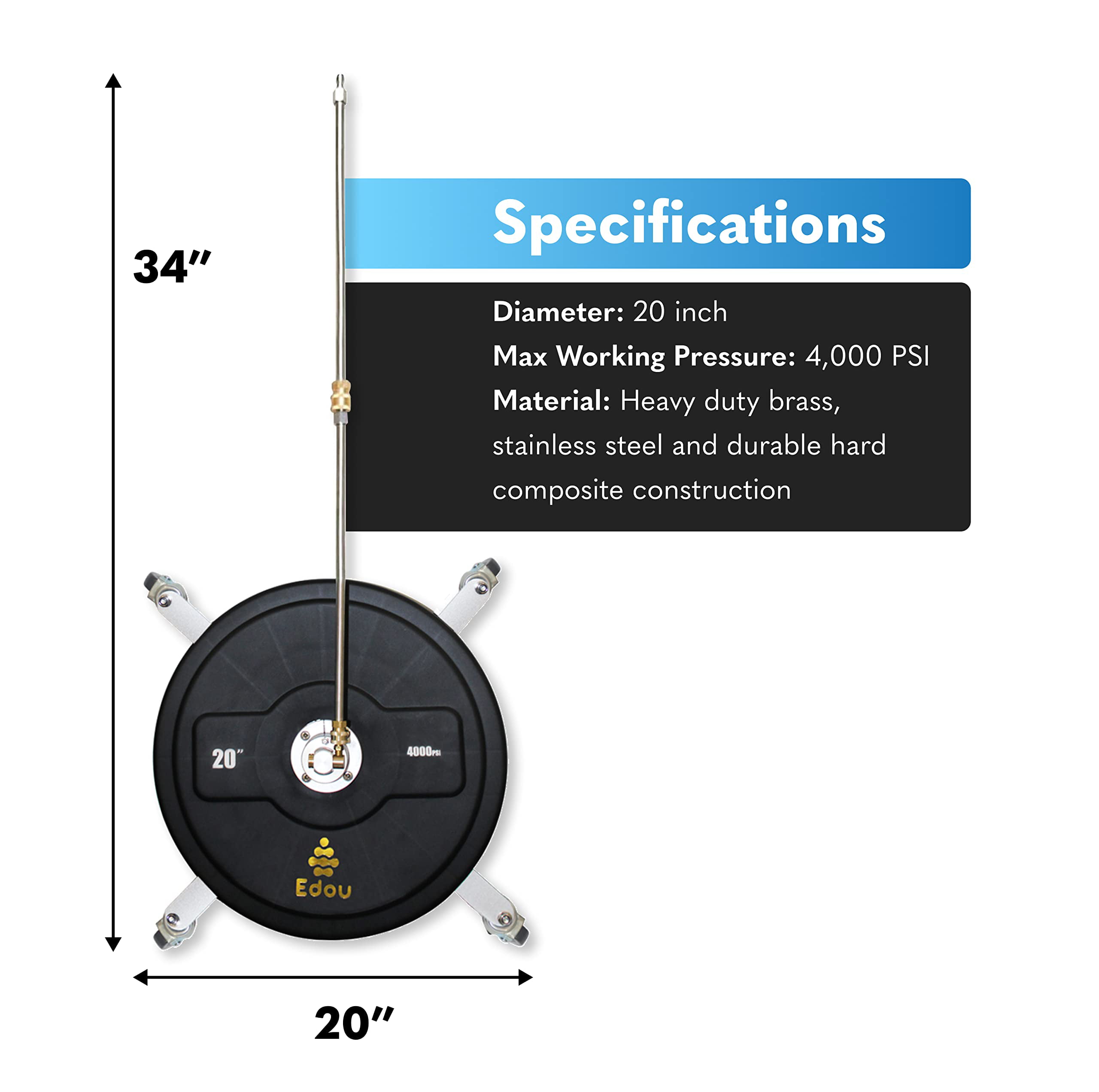 Edou 20-Inch Pressure Washer Surface Cleaner Power Washer Accessory With 2