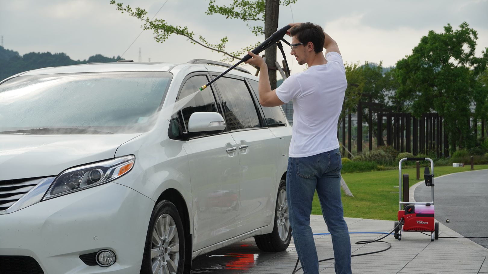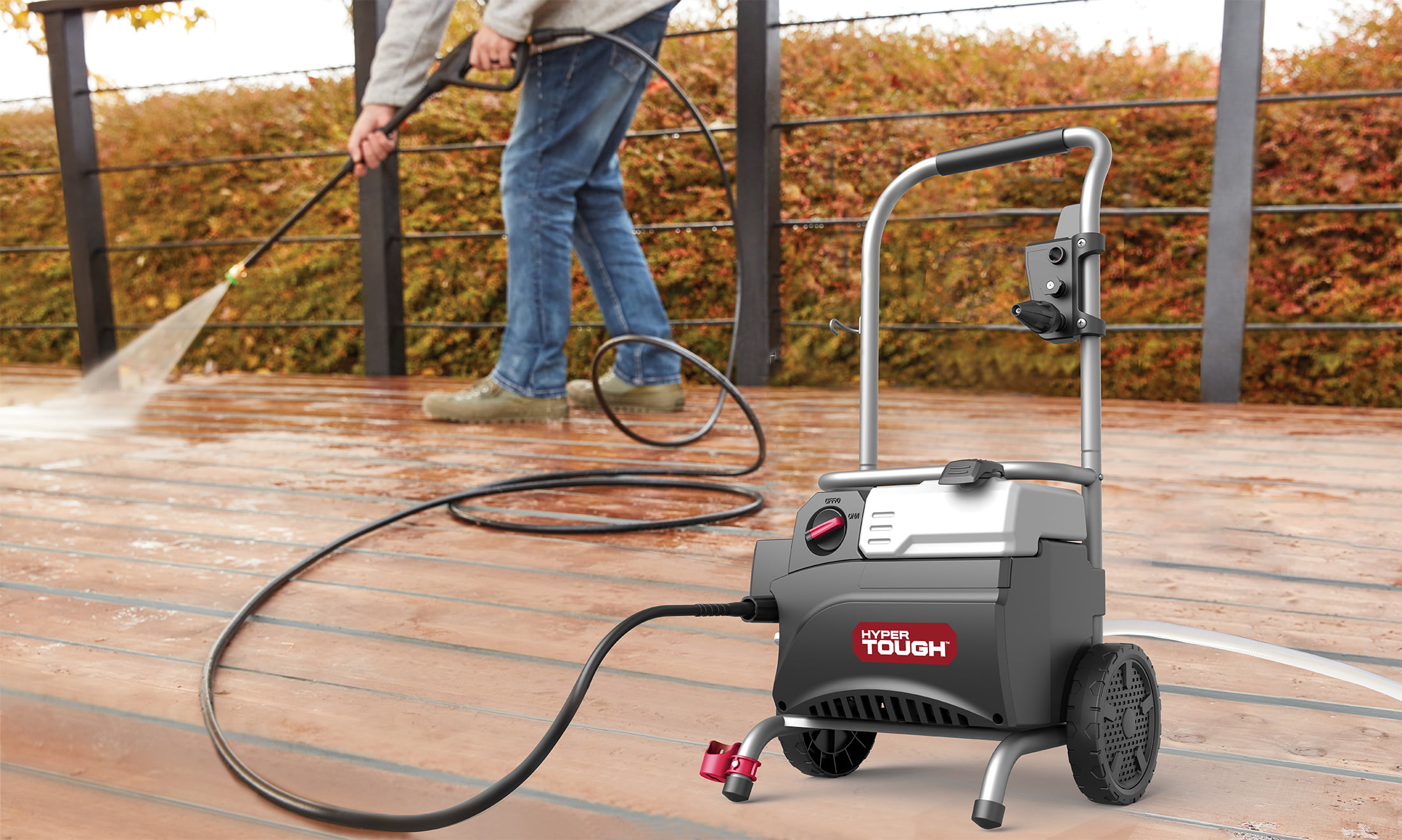 Hyper Tough Electric Pressure Washer 1800PSI Ideal for Car Wash Rugged Steel Frame. Red Black