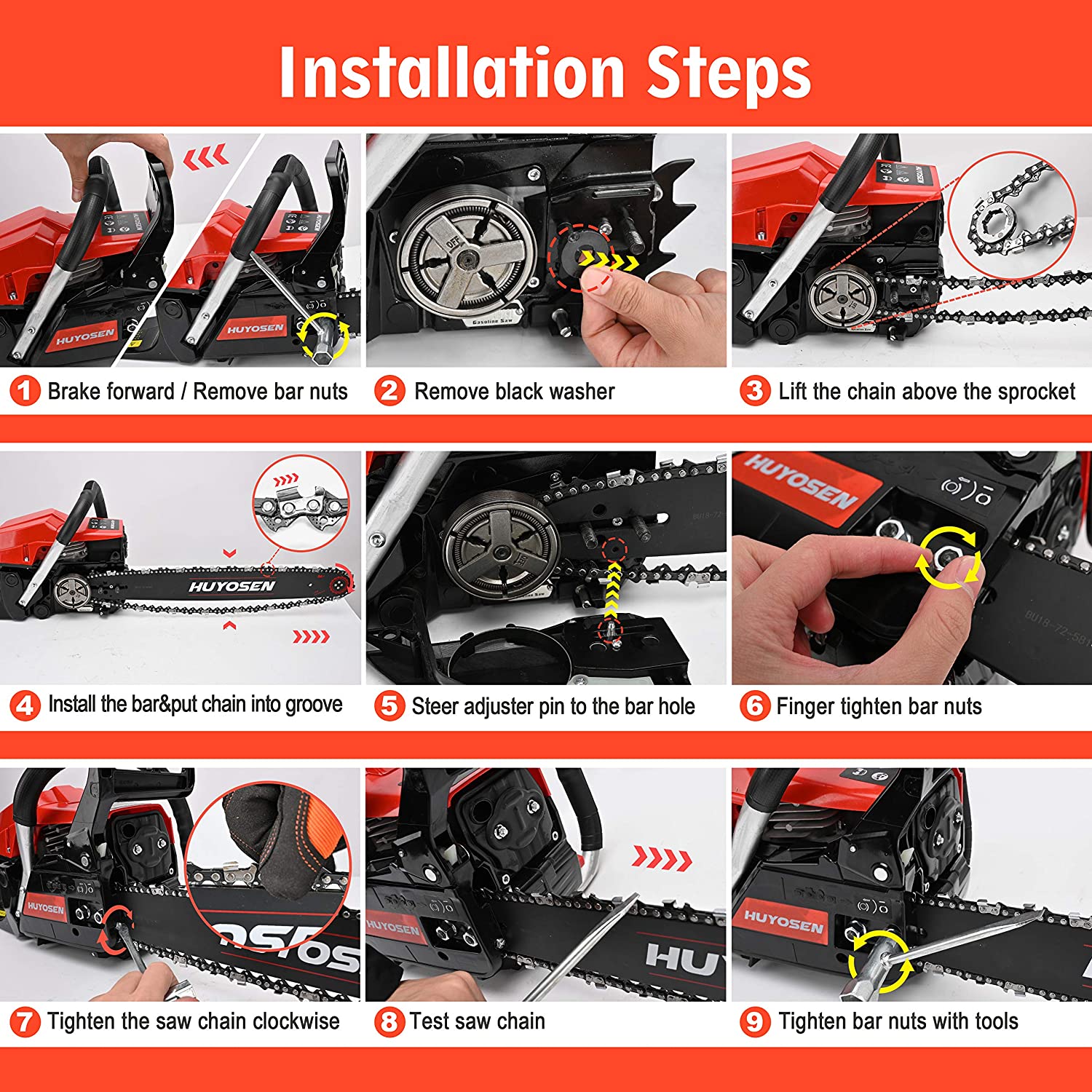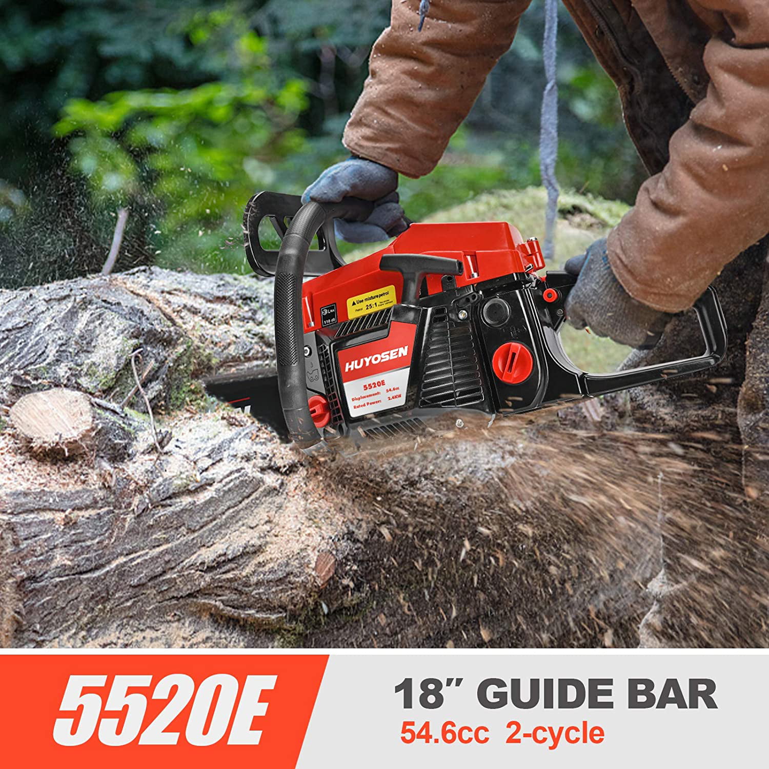 HUYOSEN Gas Chainsaw. 54.6CC 2-Cycle Gasoline Powered Chainsaws. 20-Inch Chainsaw. Handheld Cordless Petrol Power Chain Saws for Forest Cutting Trees. Wood. Garden and Farm(HN-C5520E)