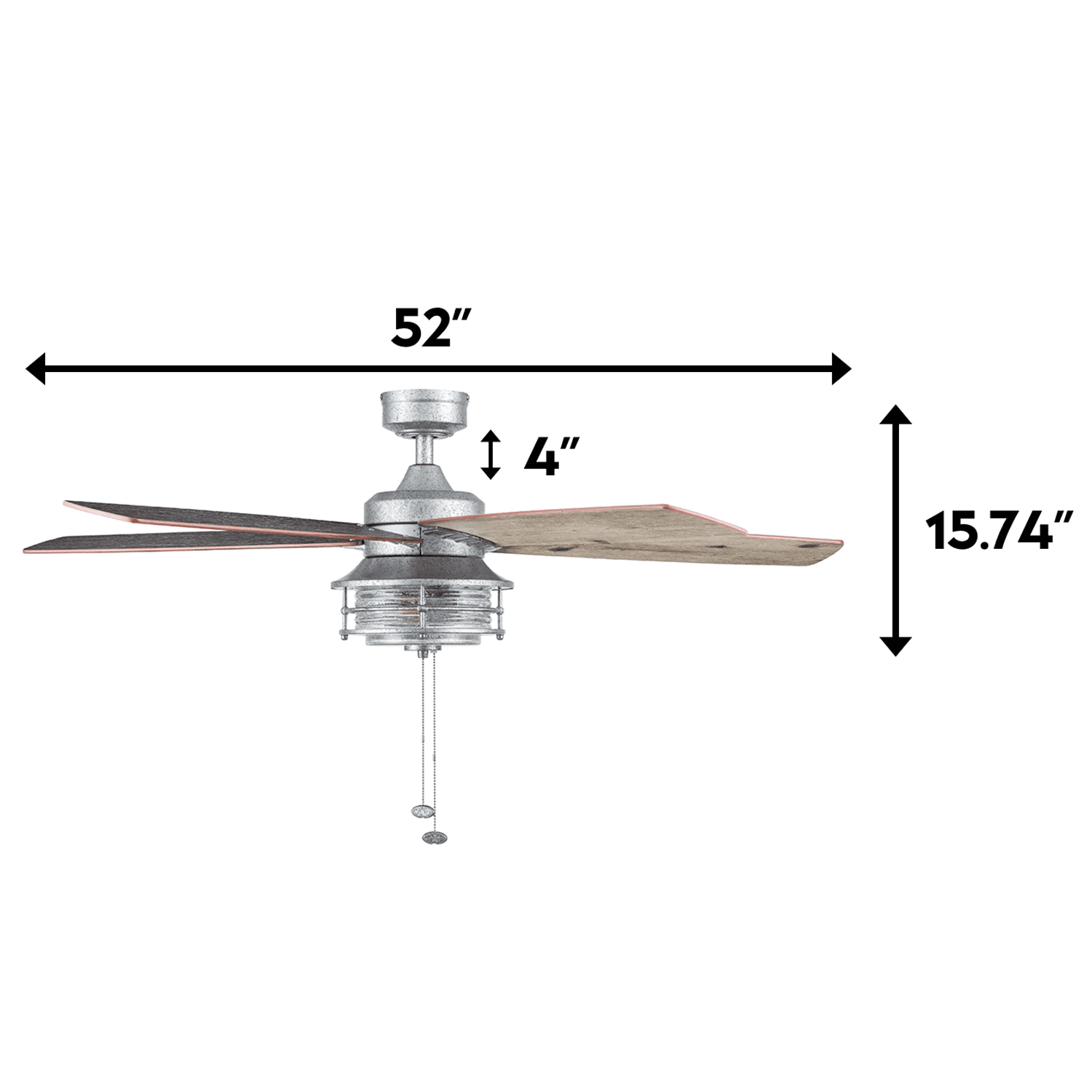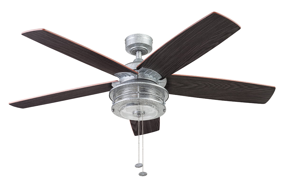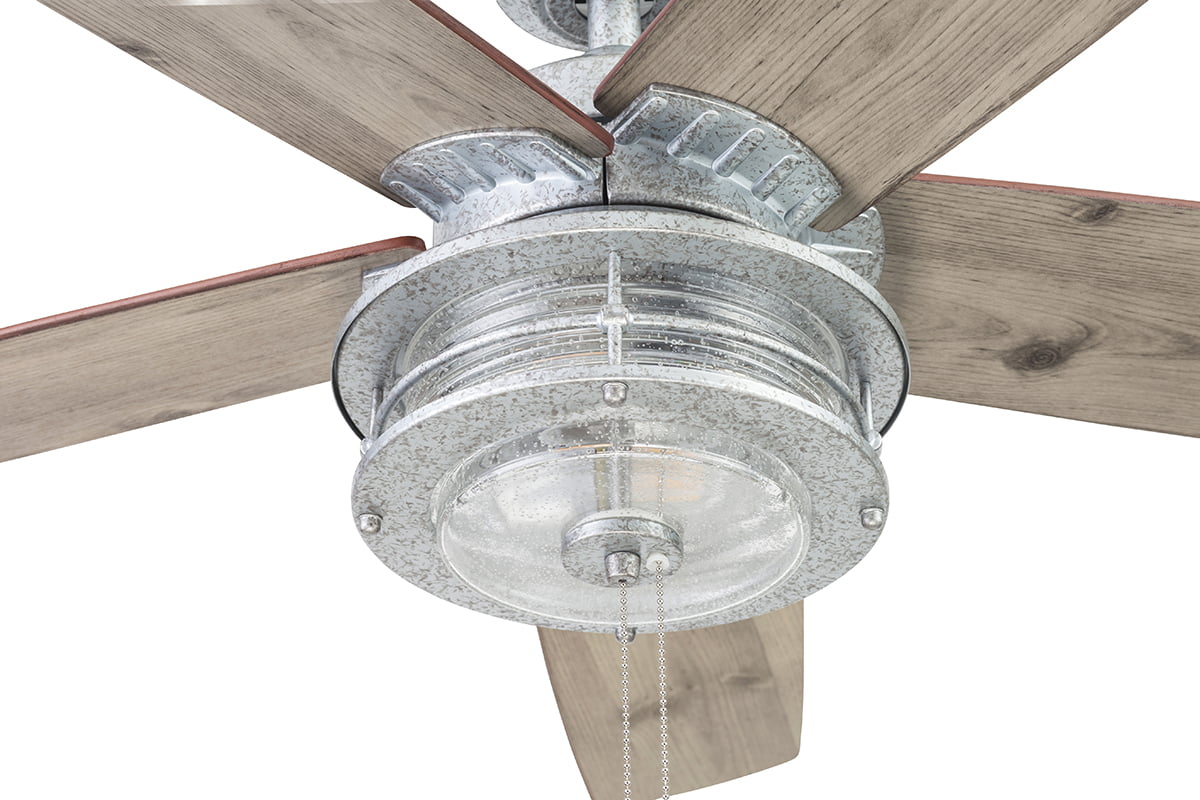 Prominence Home Foxhaven 52″ Galvanized Farmhouse Ceiling Fan with 5 Blades. Lantern Style Light Kit & Pull Chains
