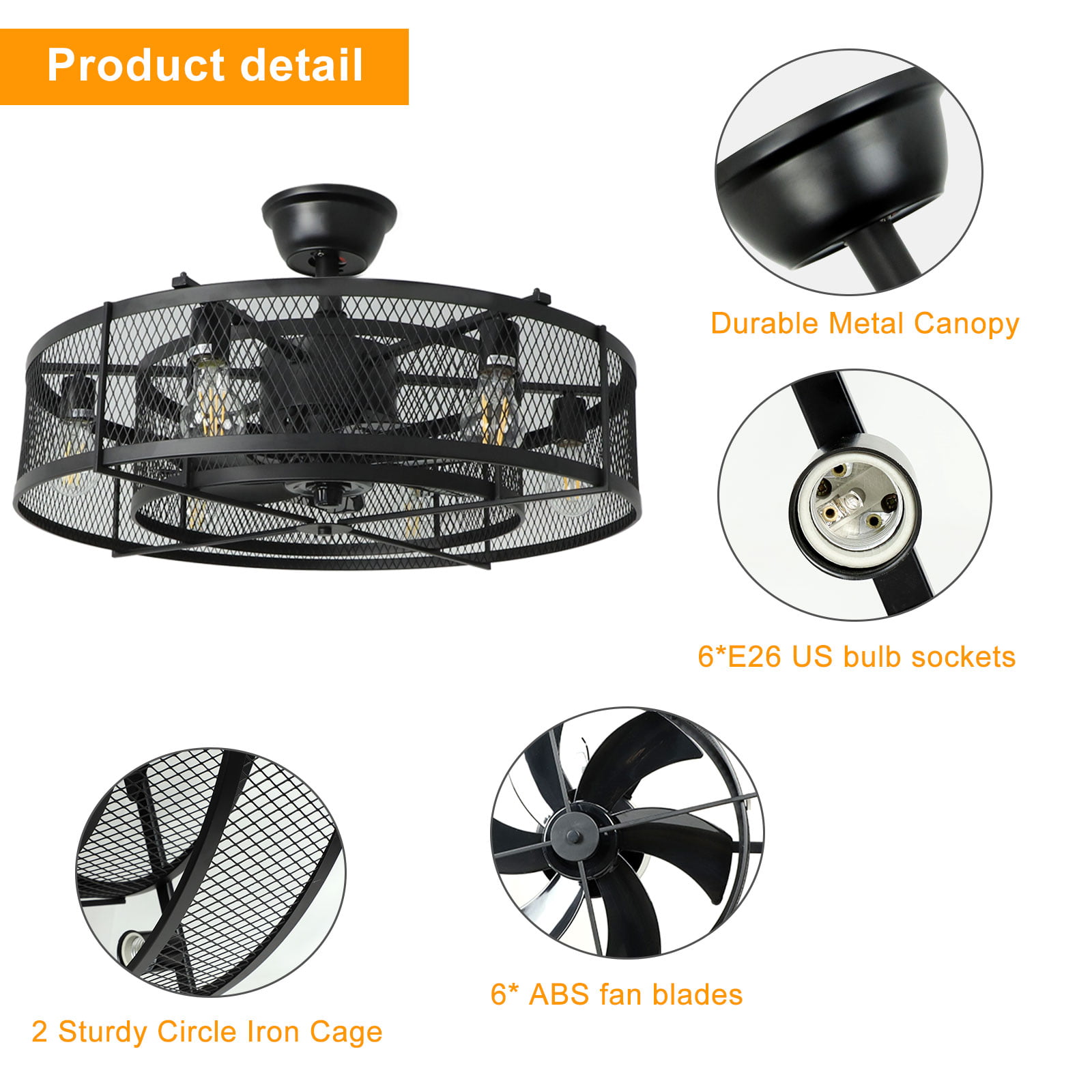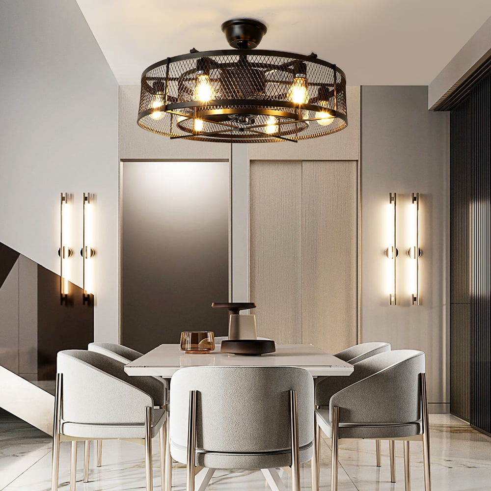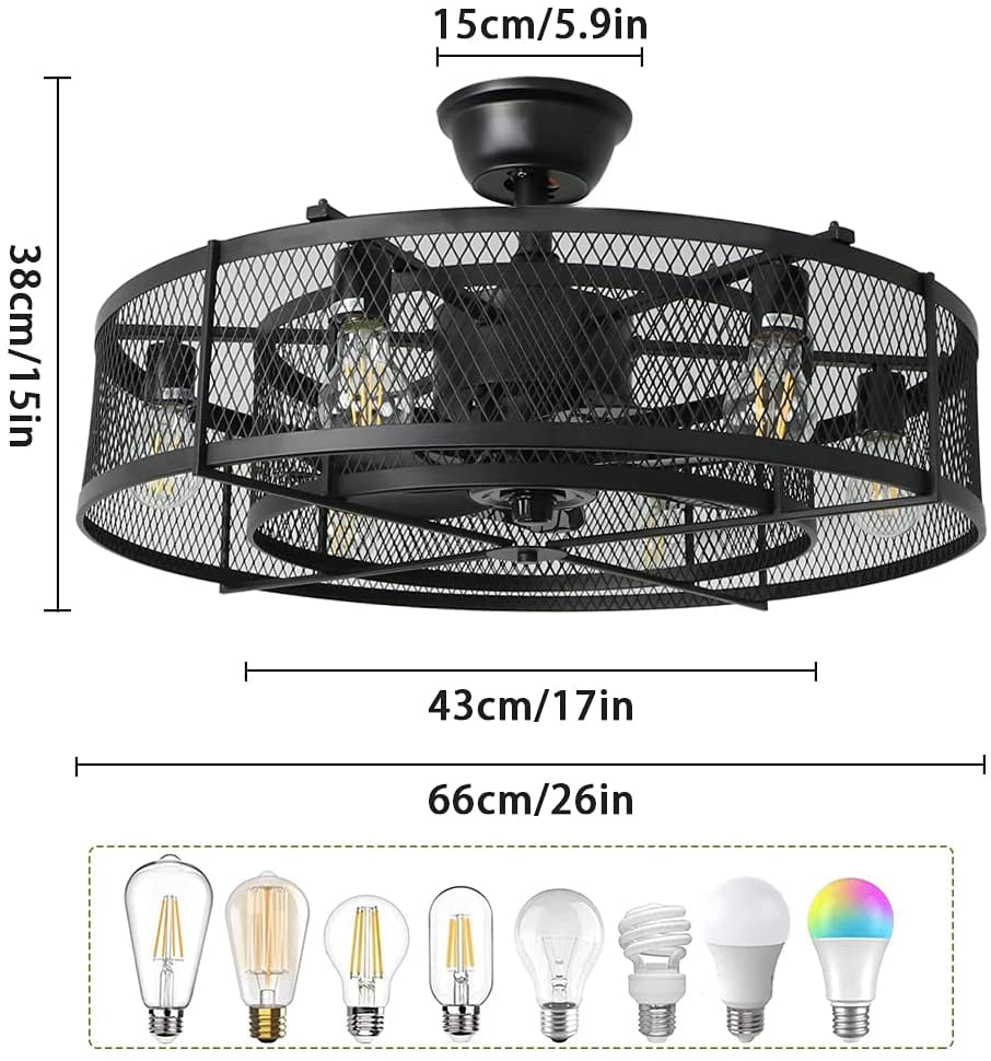 Depuley 26″ 6 Blades Industrial Ceiling Fans with light. Flush Mount Ceiling Fan Light Kit. Remote Control 3 Wind Speed