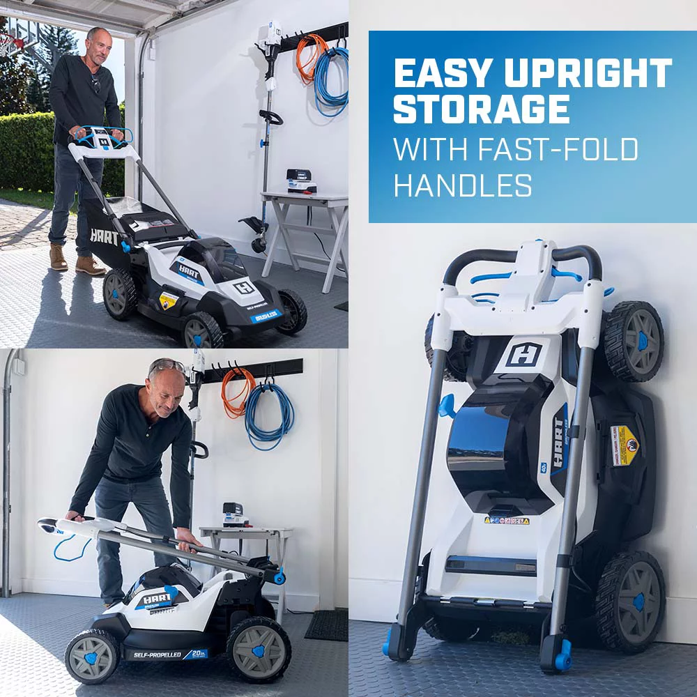 HART 40-Volt Cordless 20-inch Brushless Self Propelled Mower Kit. (1) 6.0 Ah Lithium-Ion Battery. (1) Battery Charger