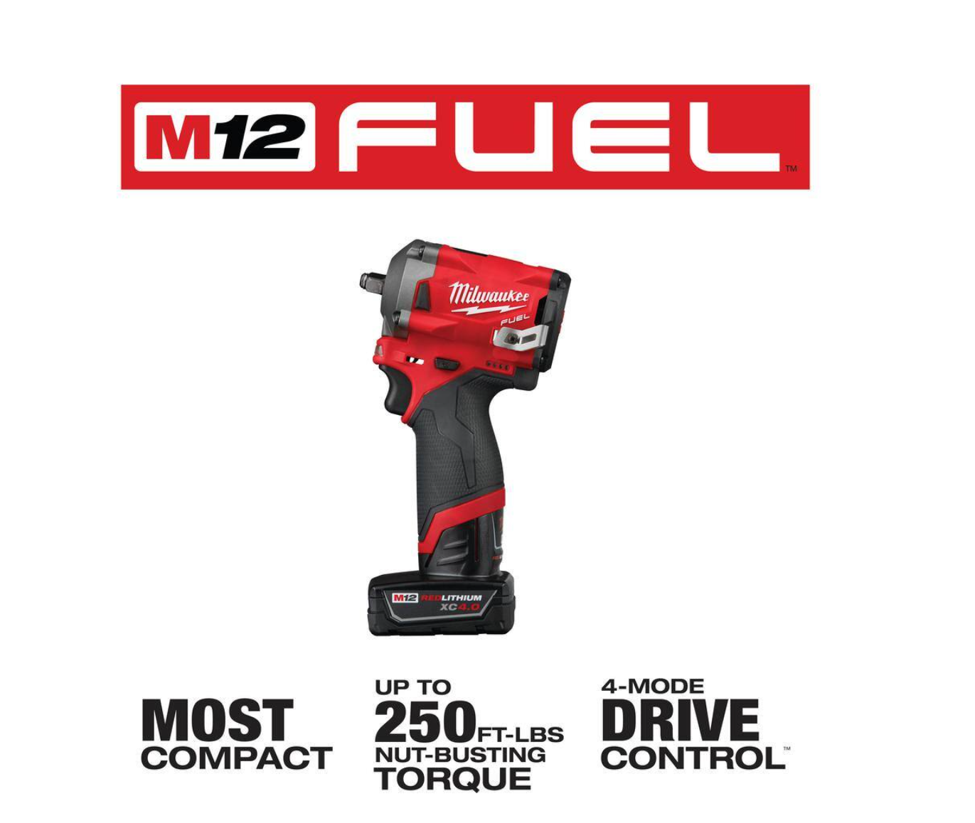 Milwaukee 2555-22-48-11-2460 M12 FUEL 12V Lithium-Ion Brushless Cordless Stubby 1/2 in. Impact Wrench Kit with 6.0Ah Battery