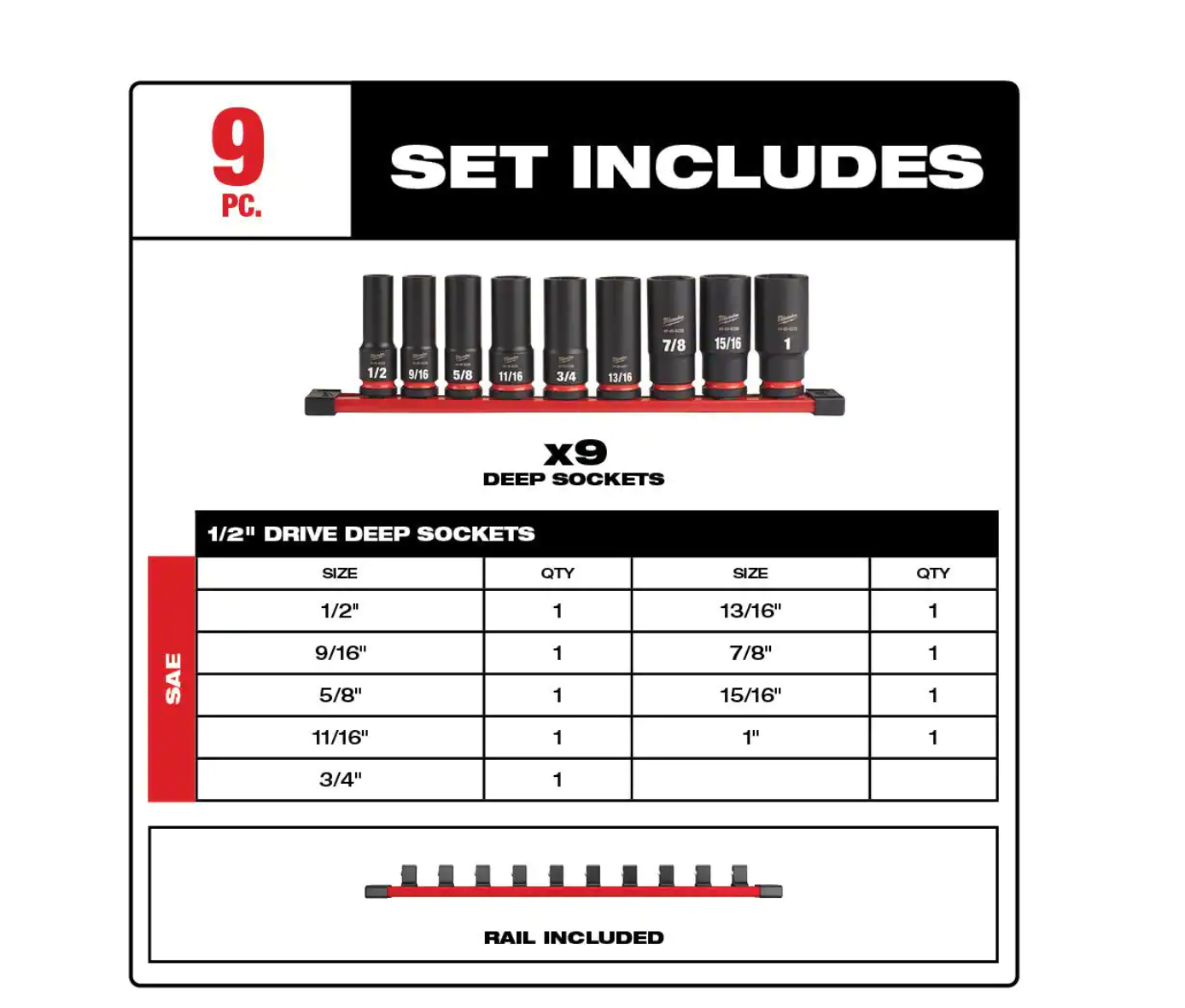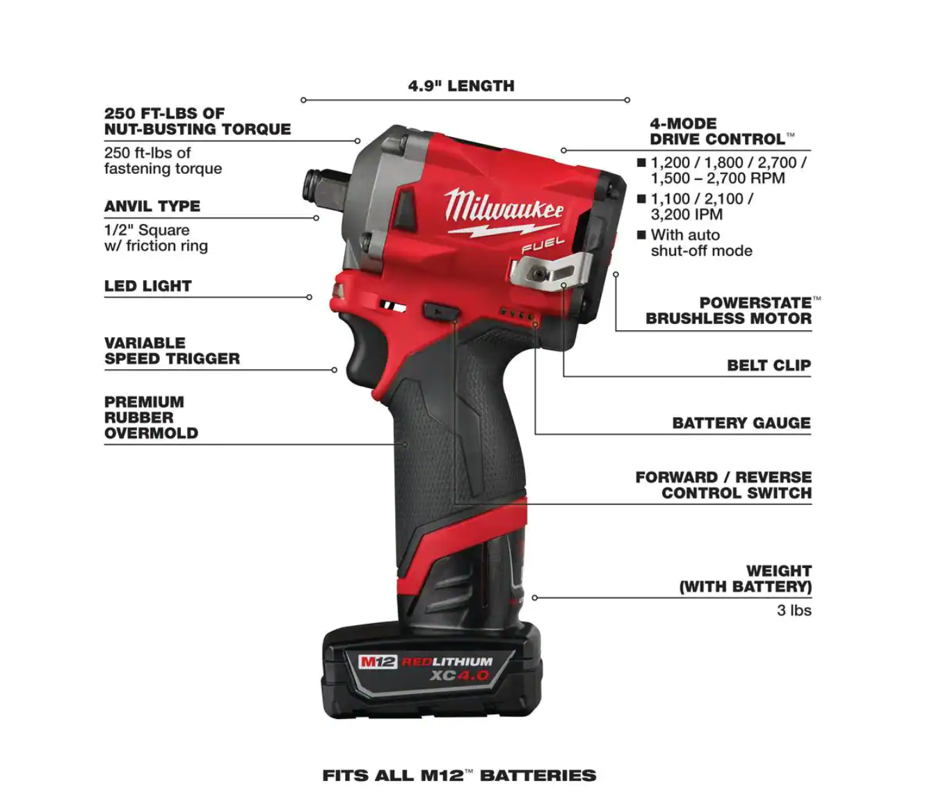 Milwaukee 2555-22-49-66-7022 M12 FUEL 12V Cordless Brushless Stubby 1/2 in. Impact Wrench Kit with 1/2 in. Drive SAE Deep Socket Set (9-Piece)
