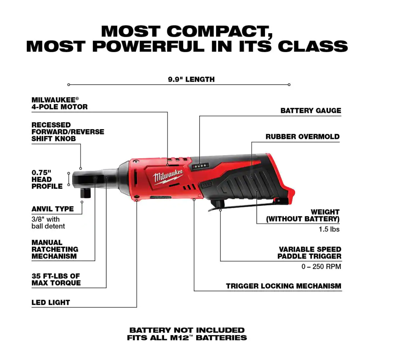 Milwaukee 2554-22-2457-20 M12 FUEL 12V Lithium-Ion Brushless Cordless Stubby 3/8 in. Impact Wrench Kit with M12 3/8 in. Ratchet