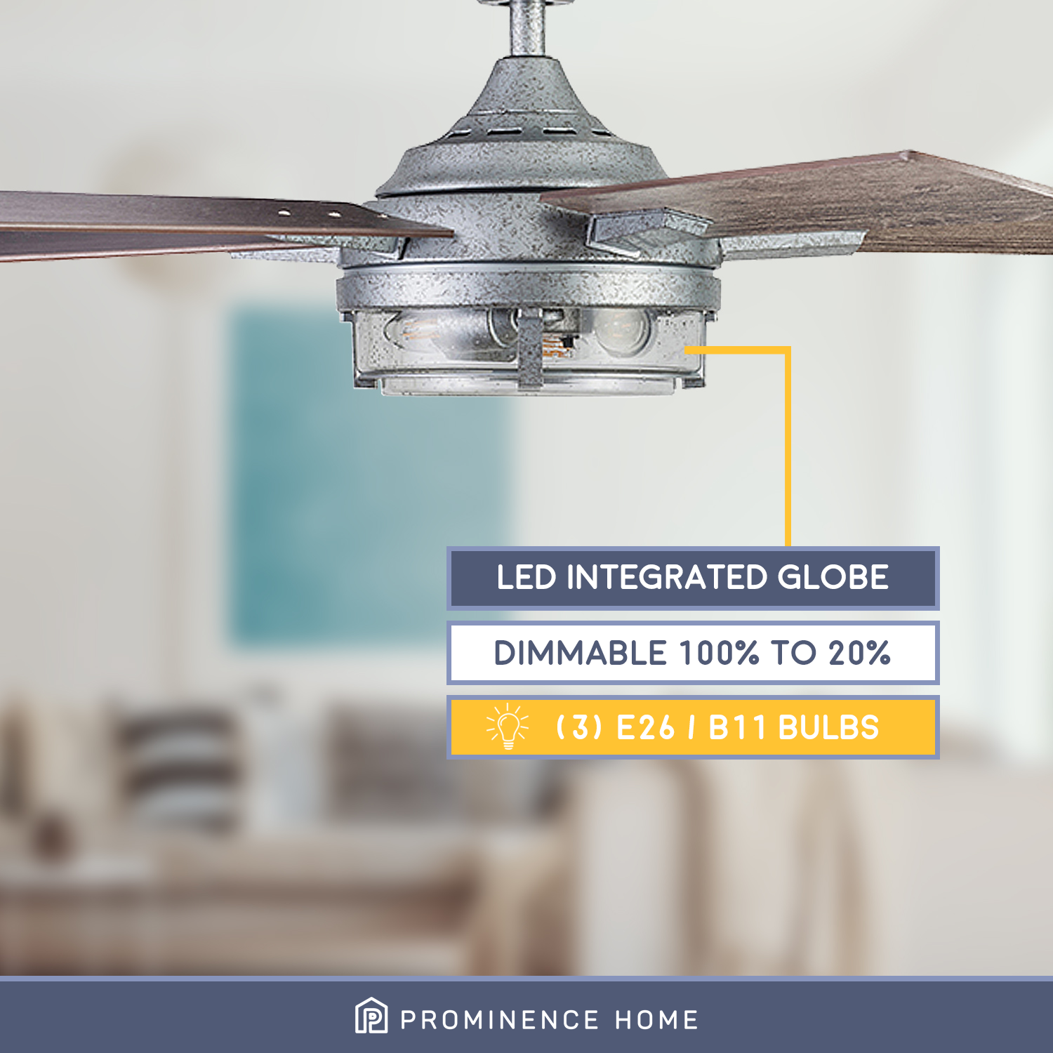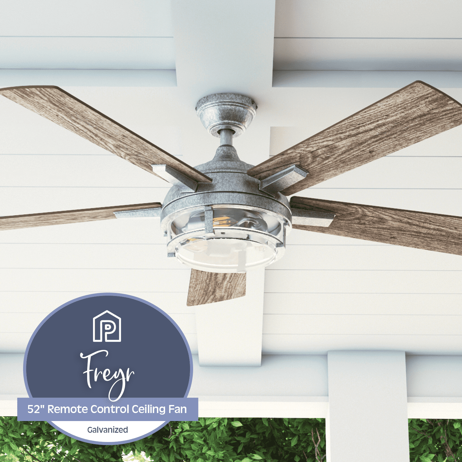 Prominence Home 52″ Freyr Galvanized Remote Control Ceiling Fan. Damp-Rated. Outdoor. 5 Blades