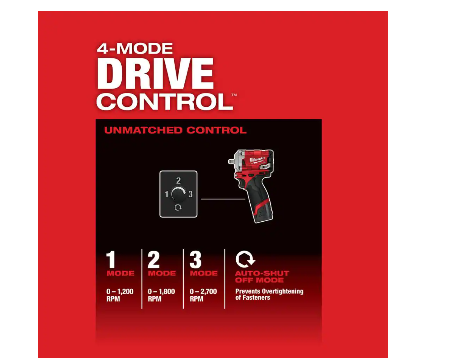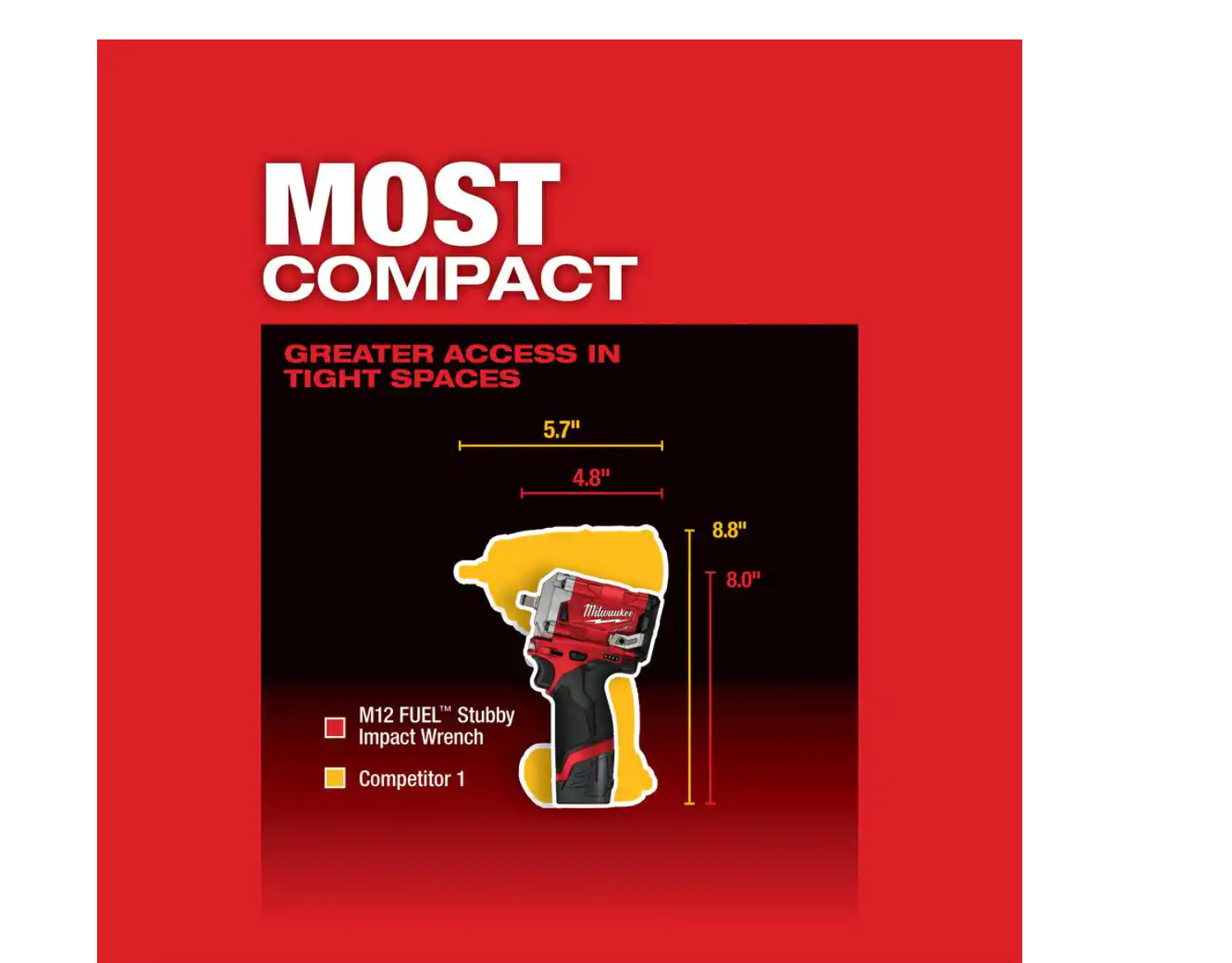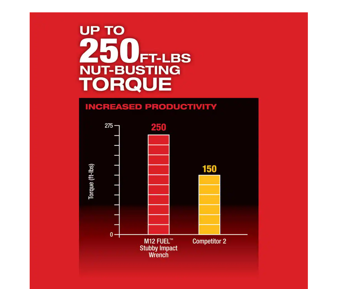 Milwaukee 2554-22-48-11-2460 M12 FUEL 12V Lithium-Ion Brushless Cordless Stubby 3/8 in. Impact Wrench Kit with 6.0Ah Battery