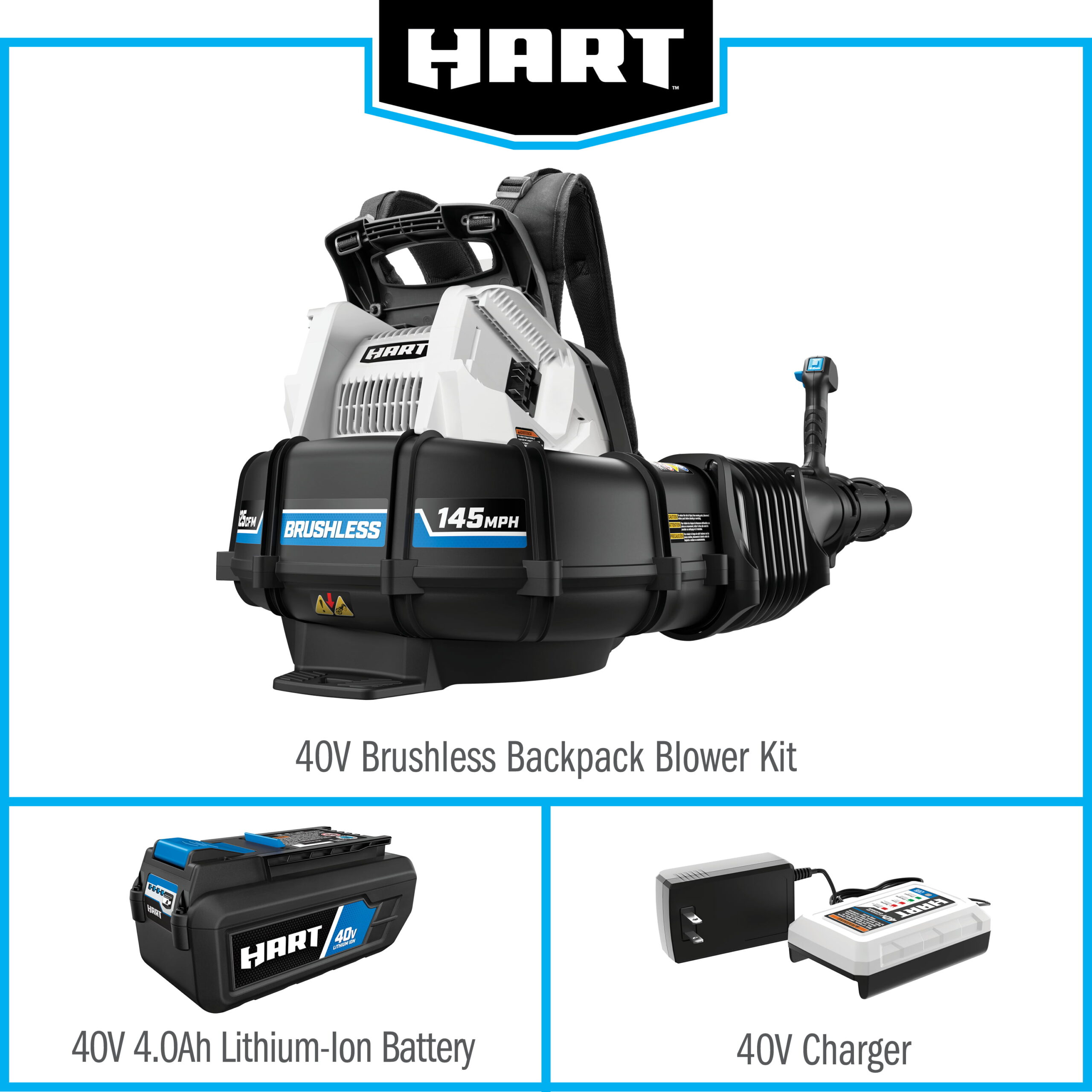 HART 40-Volt Cordless Brushless Backpack Blower Kit (1) 5.0Ah Lithium-Ion Battery