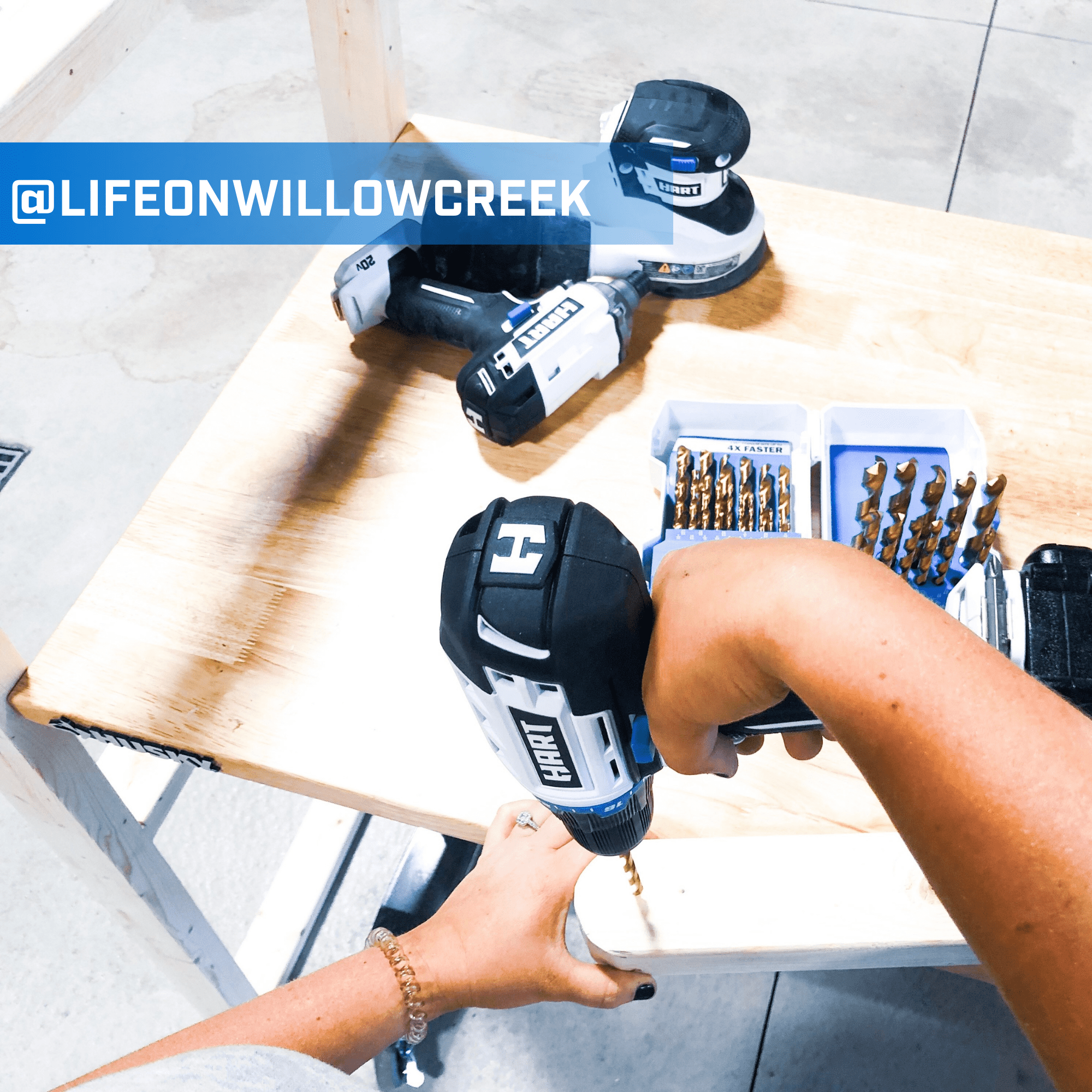 HART 20-Volt Cordless 4-Tool Combo Kit with 200-Piece Accessory Kit and 16-inch Storage Bag. (2) 20-Volt 1.5Ah Lithium-Ion Battery