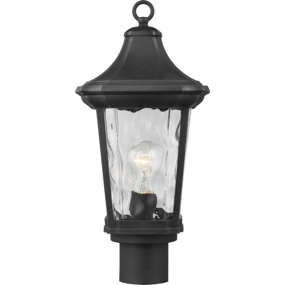 Progress Lighting Marquette Collection 1-Light Textured Black Clear Water Glass New Traditional Outdoor Post Lantern Light