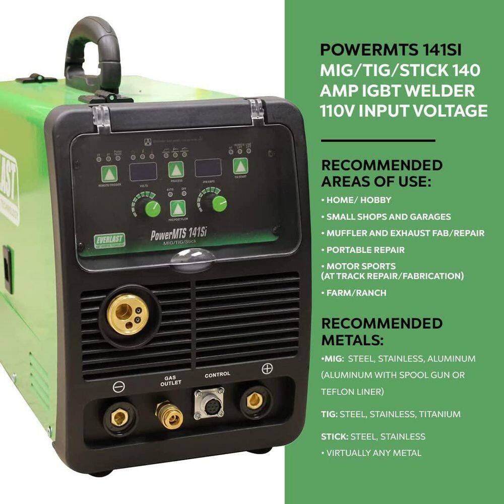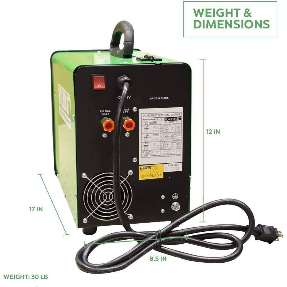 Everlast PowerMTS 141Si 140 Amp 110-Volt AC Voltage Input DC MIG/TIG/Stick Multi-Process Welder Compact and Lightweight