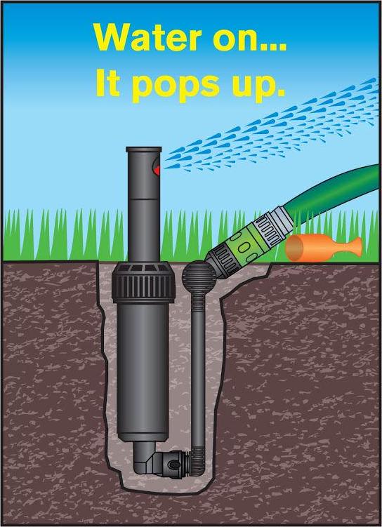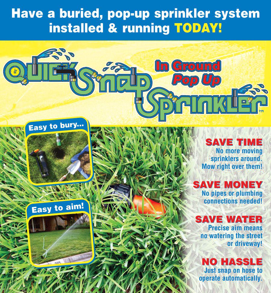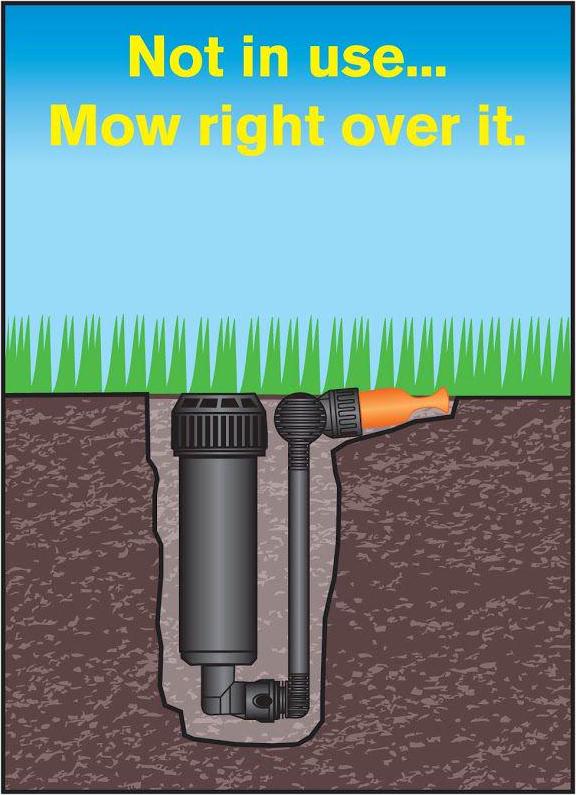 Quick Snap 5.000 sq. ft. Buried Sprinkler Kit. Orange Locator Cap. Adjustment Key. Hose Quick-Connect with Auto Stop
