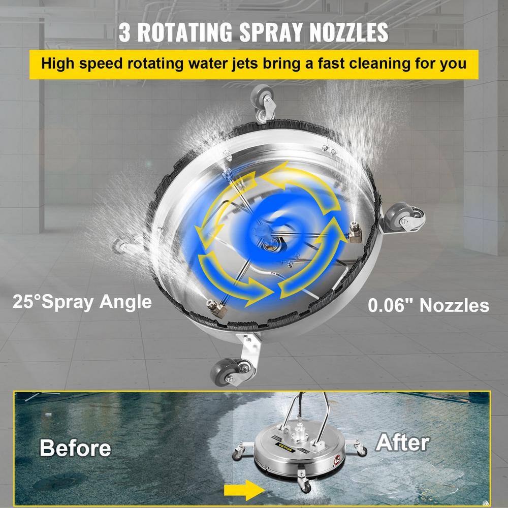 VEVOR QDXDJ24CDJL000001V0 24 in. Surface Cleaner 4000 PSI Stainless Steel Rotating Surface Cleaner Fit for 3/8 in. Quick Connector 3 Nozzles