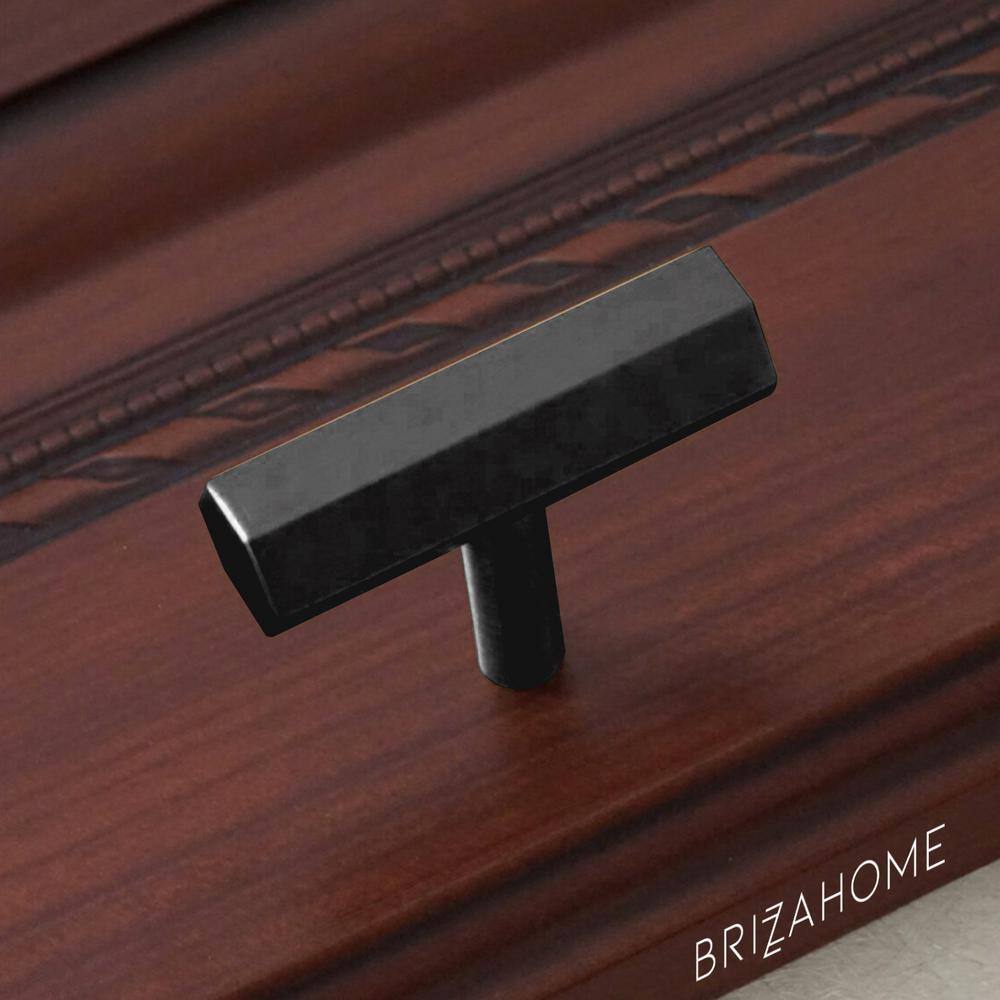 Pyramid Home Decor 25x(CH011-G50) Brizza Series 2 in. (50 mm) Black Matte Solid Brass Hexagonal T-Bar Cabinet Knob (25-Pack)