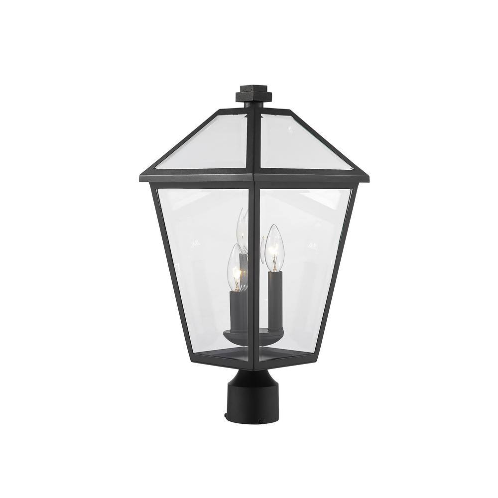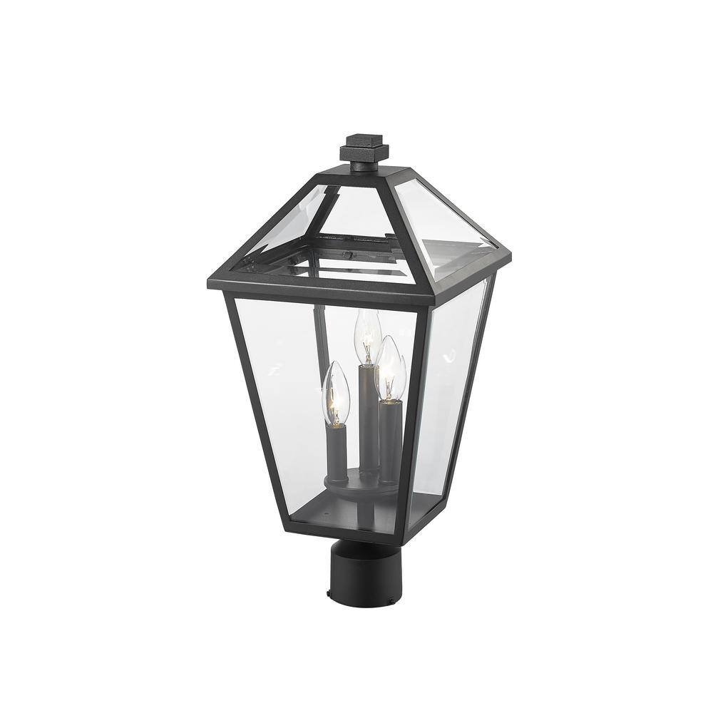 Unbranded Talbot 3-Light Black 20 in. Steel Hardwired Outdoor Weather Resistant Post Light with Round Fitter with No Bulb Included