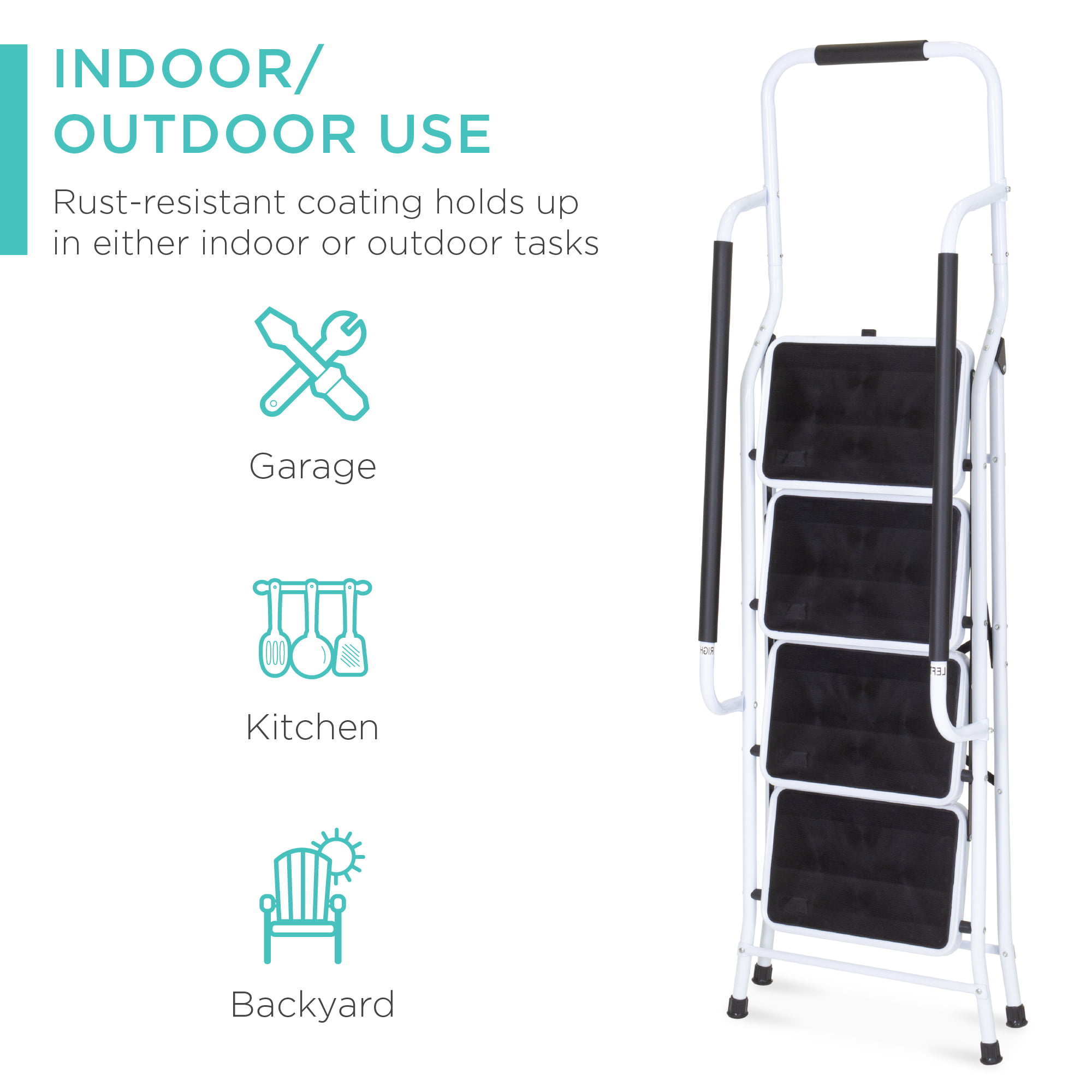 Best Choice Products 4-Step Portable Folding Anti-Slip Steel Ladder w/ Handrails. Attachable Tool Bag