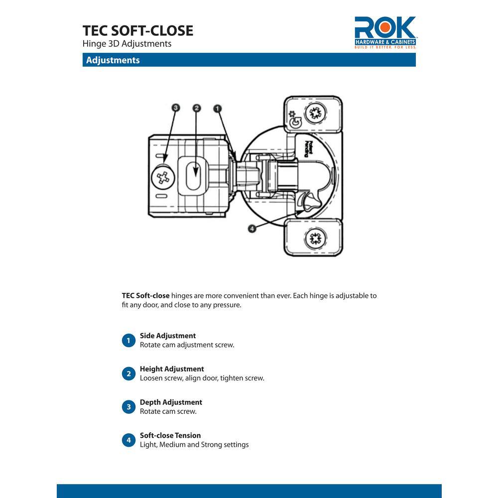 Rok G04431A-15-50 1/2 in. (35 mm) Overlay 108-Degree Soft Close Face Frame Cabinet Hinge (50-Pack)