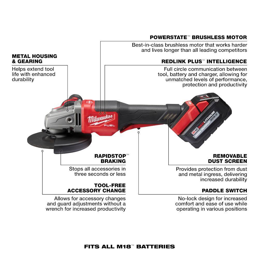 Milwaukee 2980-21 M18 FUEL 18V Lithium-Ion Brushless Cordless 4-1/2 in./6 in. Grinder with Paddle Switch Kit and One 6.0 Ah Battery
