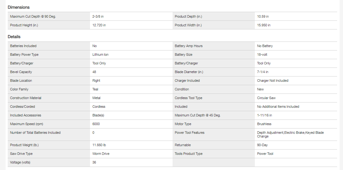 Makita XSH08Z 18-Volt X2 LXT Lithium-Ion (36-Volt) 7-1/4 in. Brushless Cordless Circular Saw Guide Rail Compatible Base (Tool-Only)