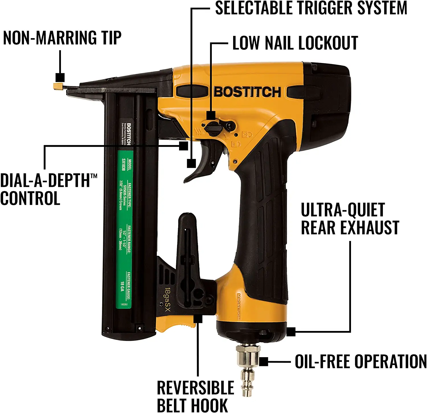 Bostitch SX1838K 18-Gauge 7/32-in Narrow Crown Finish Pneumatic Stapler