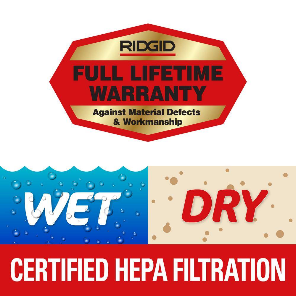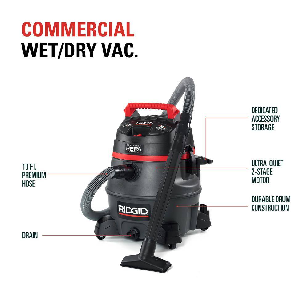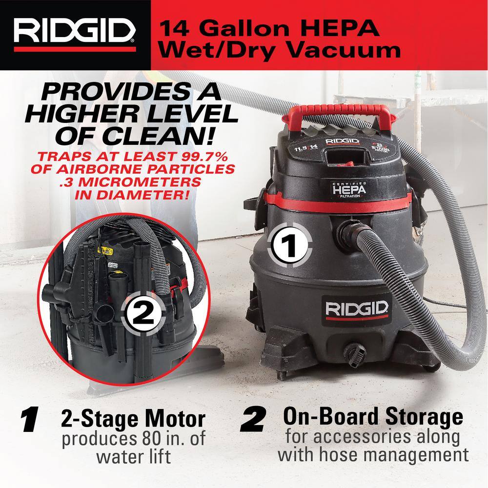 RIDGID 14 Gallon 2-Stage HEPA Commercial Wet/Dry Shop Vacuum with Filter. Dust Bag. Professional Locking Hose and Accessories