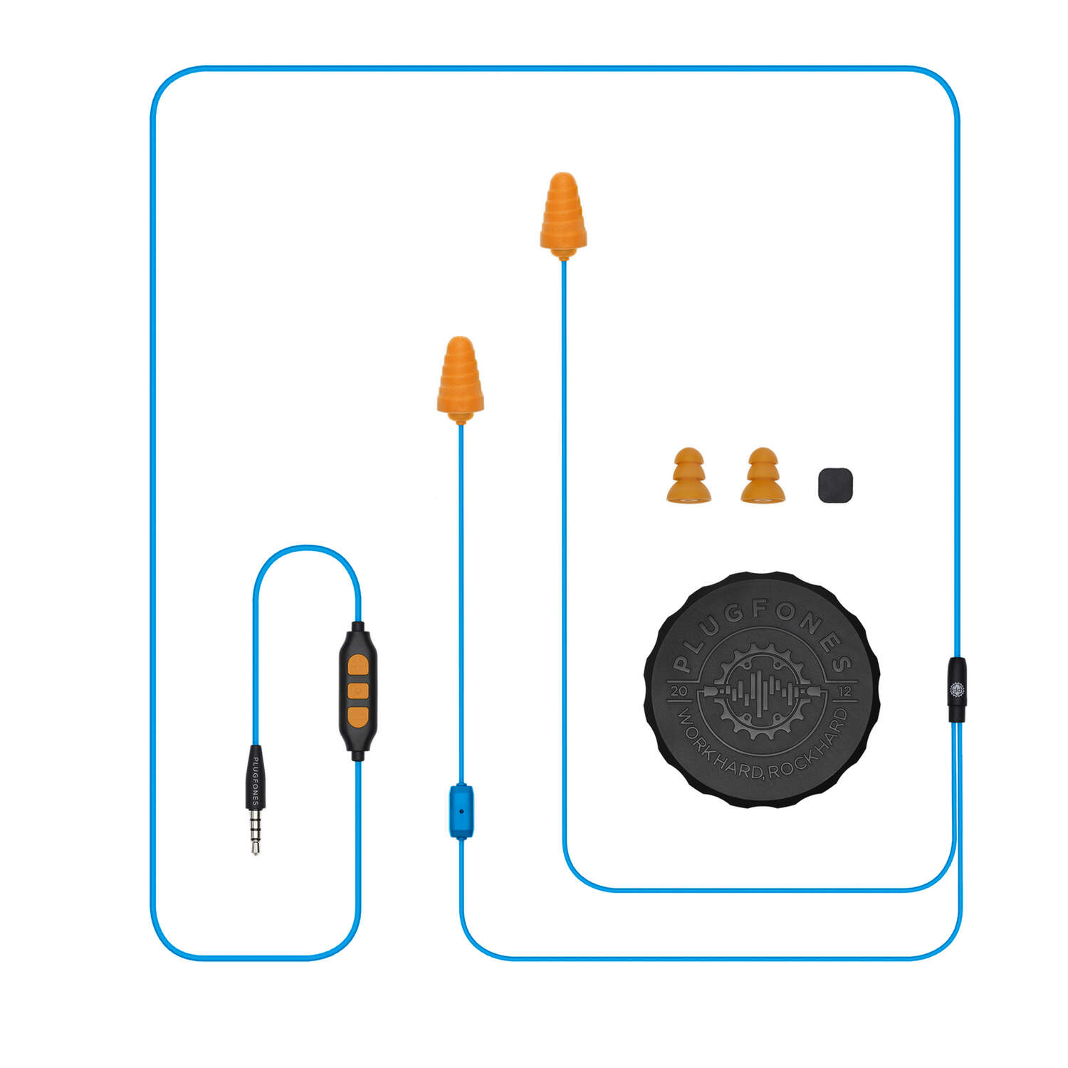 Plugfones Guardian Plus 29 dB Nylon/Silicone/Soft Foam 3.5 MM Jack Earplugs/Earphones w/Mic Blue/Ora