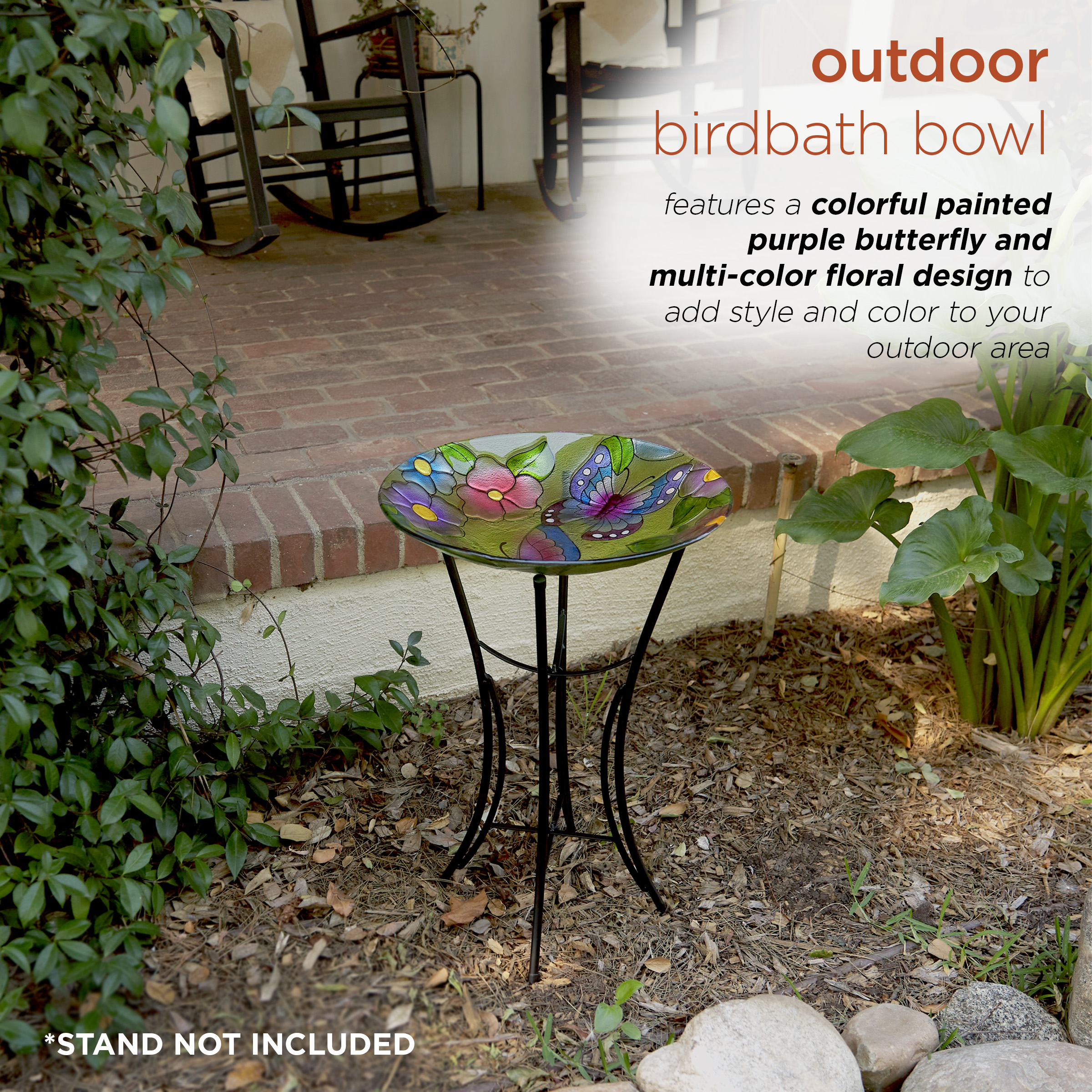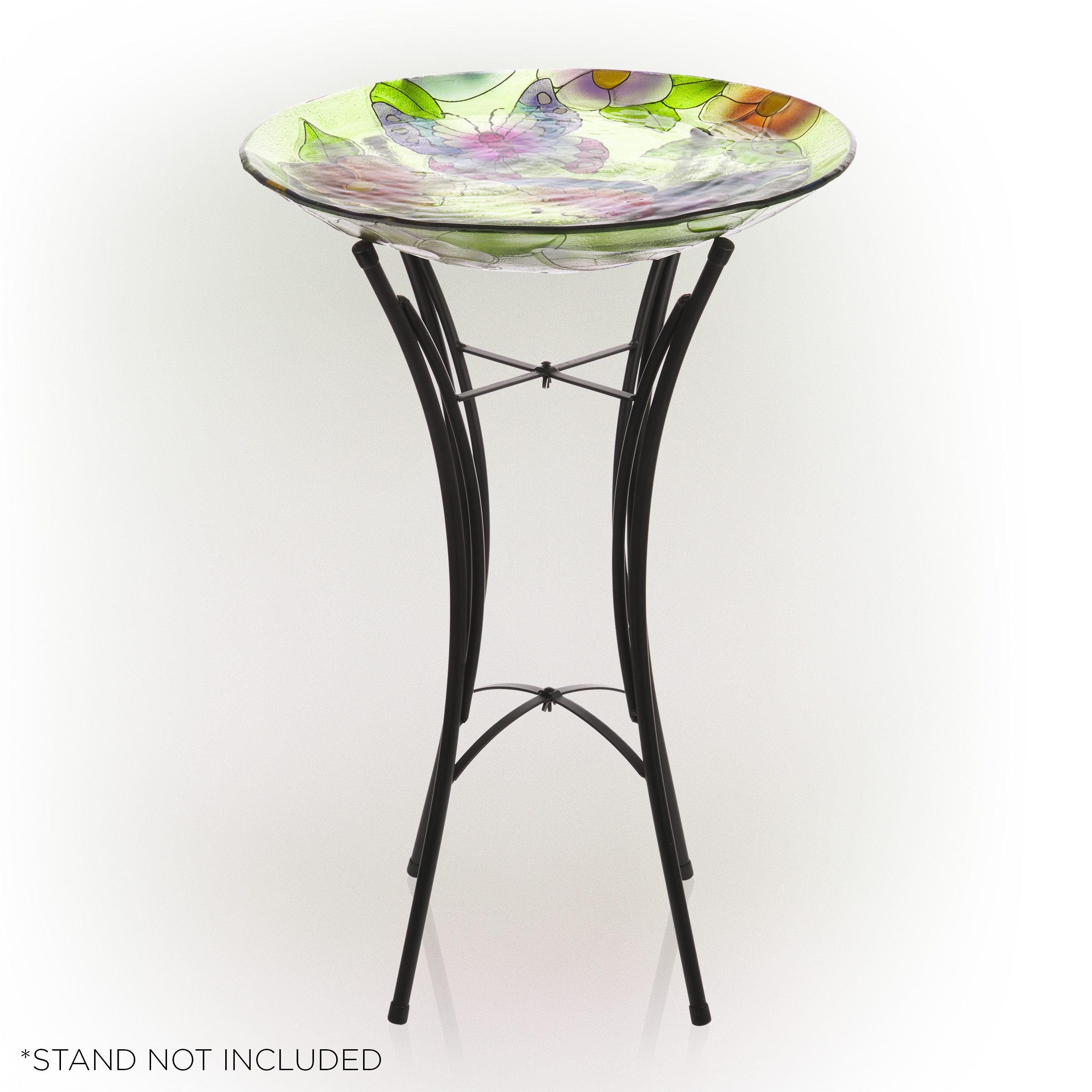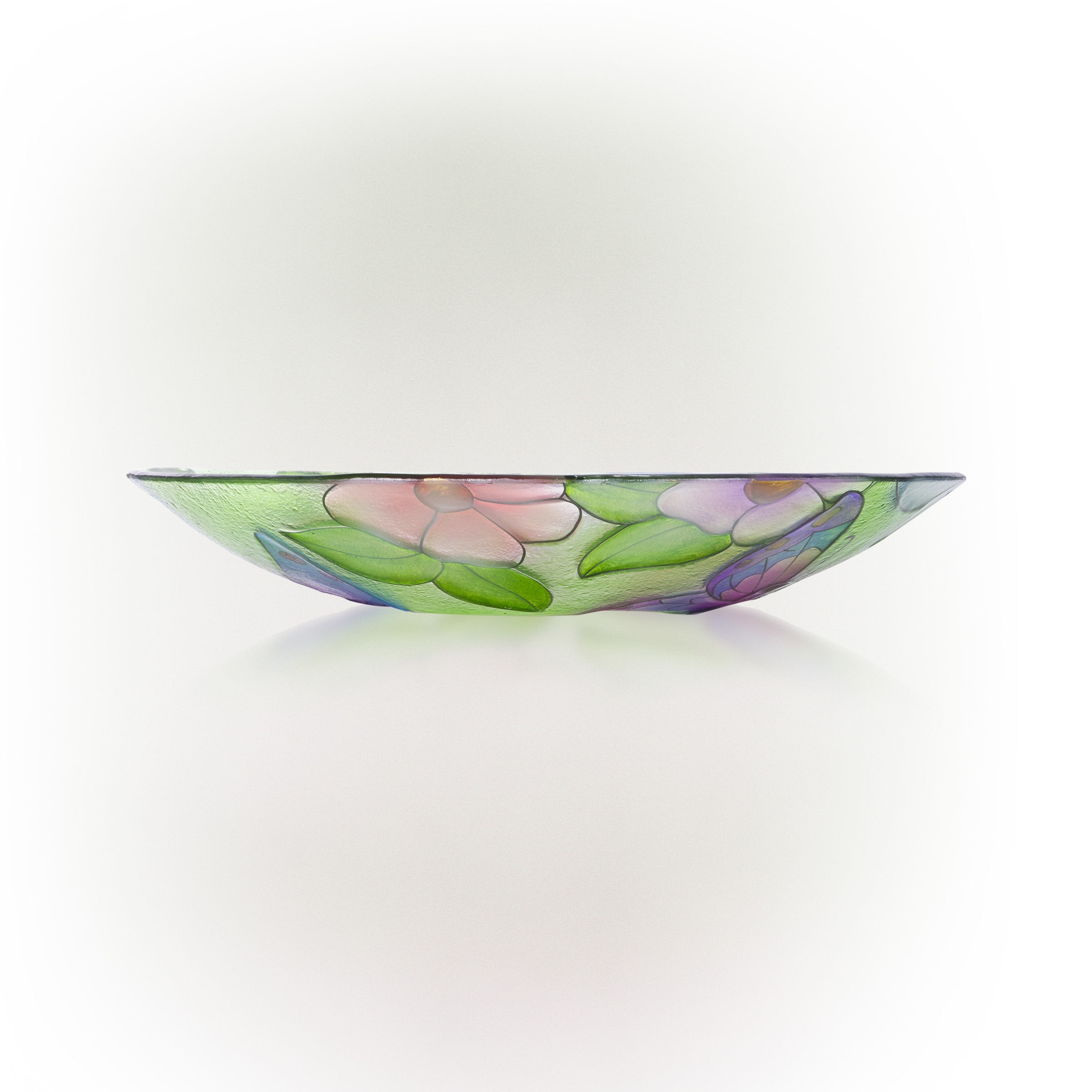 Alpine Corporation 18″ Floral Butterfly Painted Glass Birdbath Bowl. Multicolor
