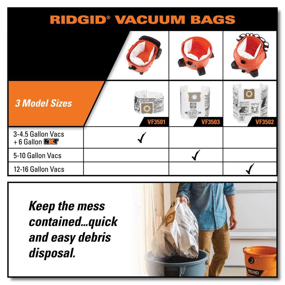 RIDGID High-Efficiency Size C Dust Collection Bags for 3 to 4.5 Gallon and HD06001 RIDGID Wet/Dry Shop Vacuums (12-Pack)