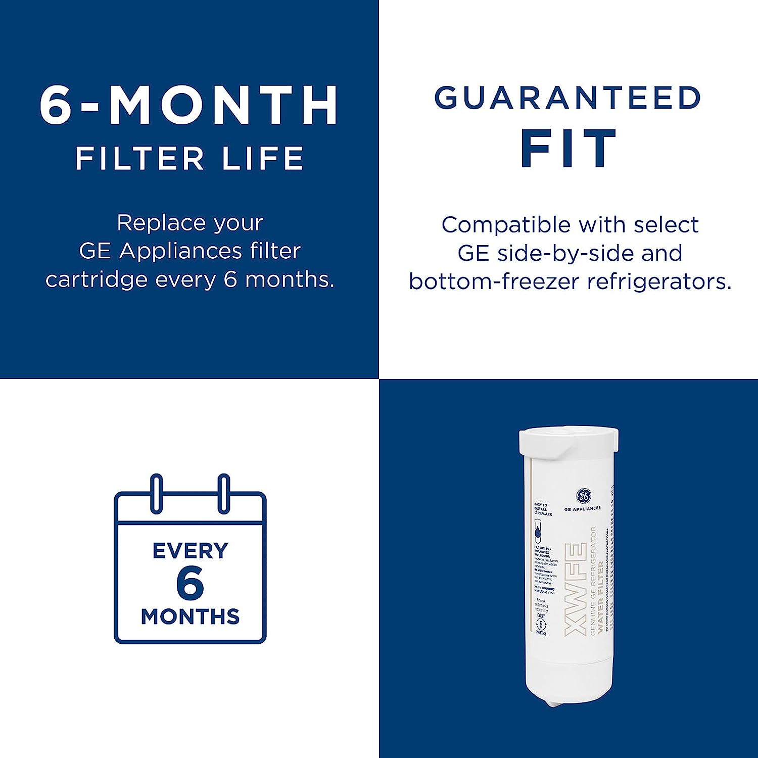 GE XWFE Refrigerator Water Filter Certified to Reduce Lead. Sulfur. and 50+ Other Impurities (Pack of 1)