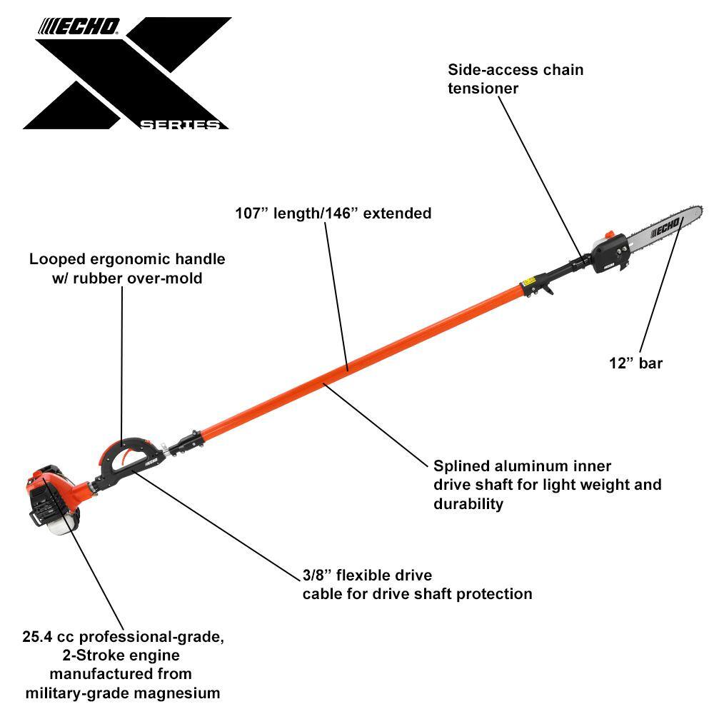 ECHO PPT-2620 12 in. 25.4 cc Gas 2-Stroke X Series Telescoping Power Pole Saw with Loop Handle and Shaft Extending to 12.1 ft.
