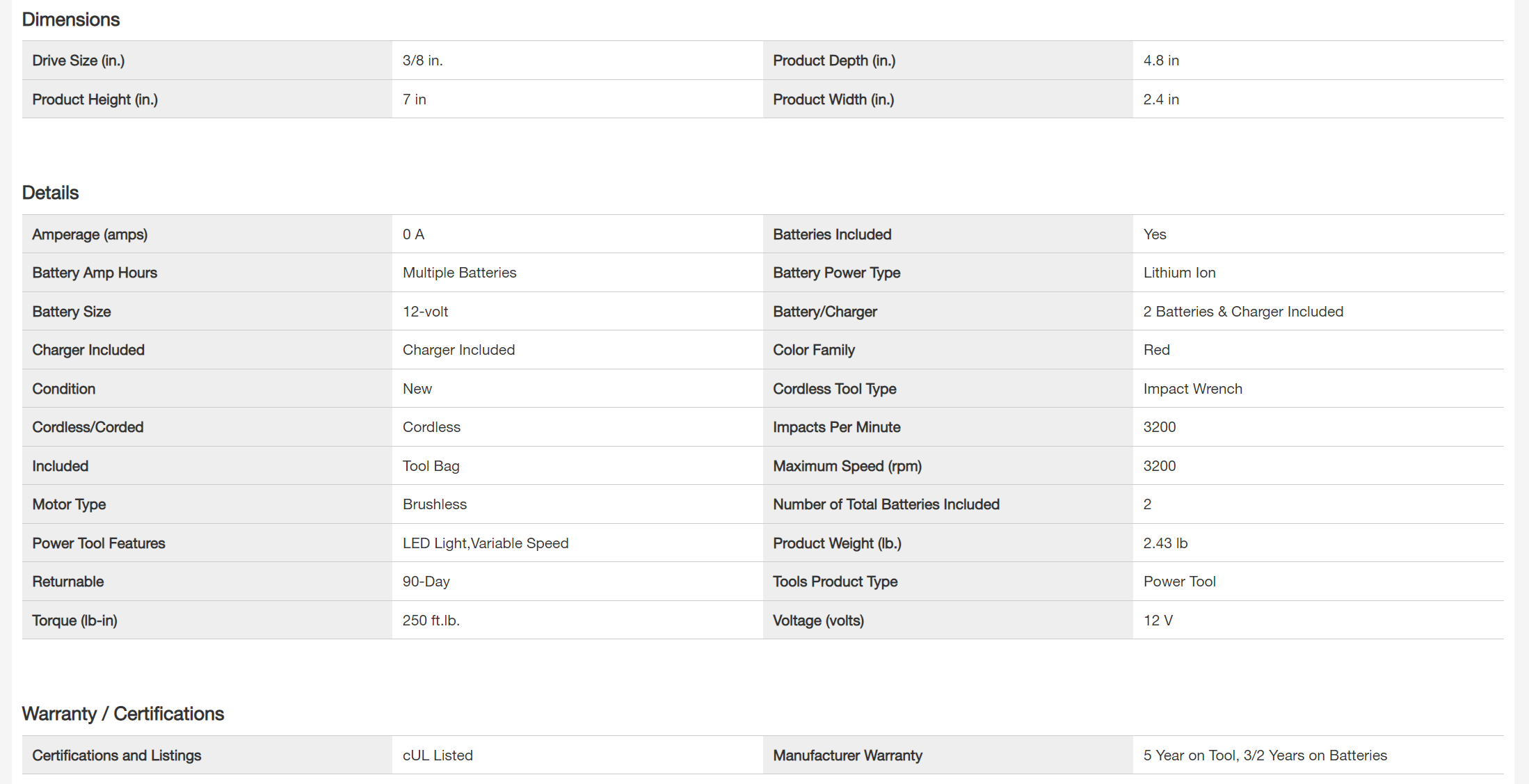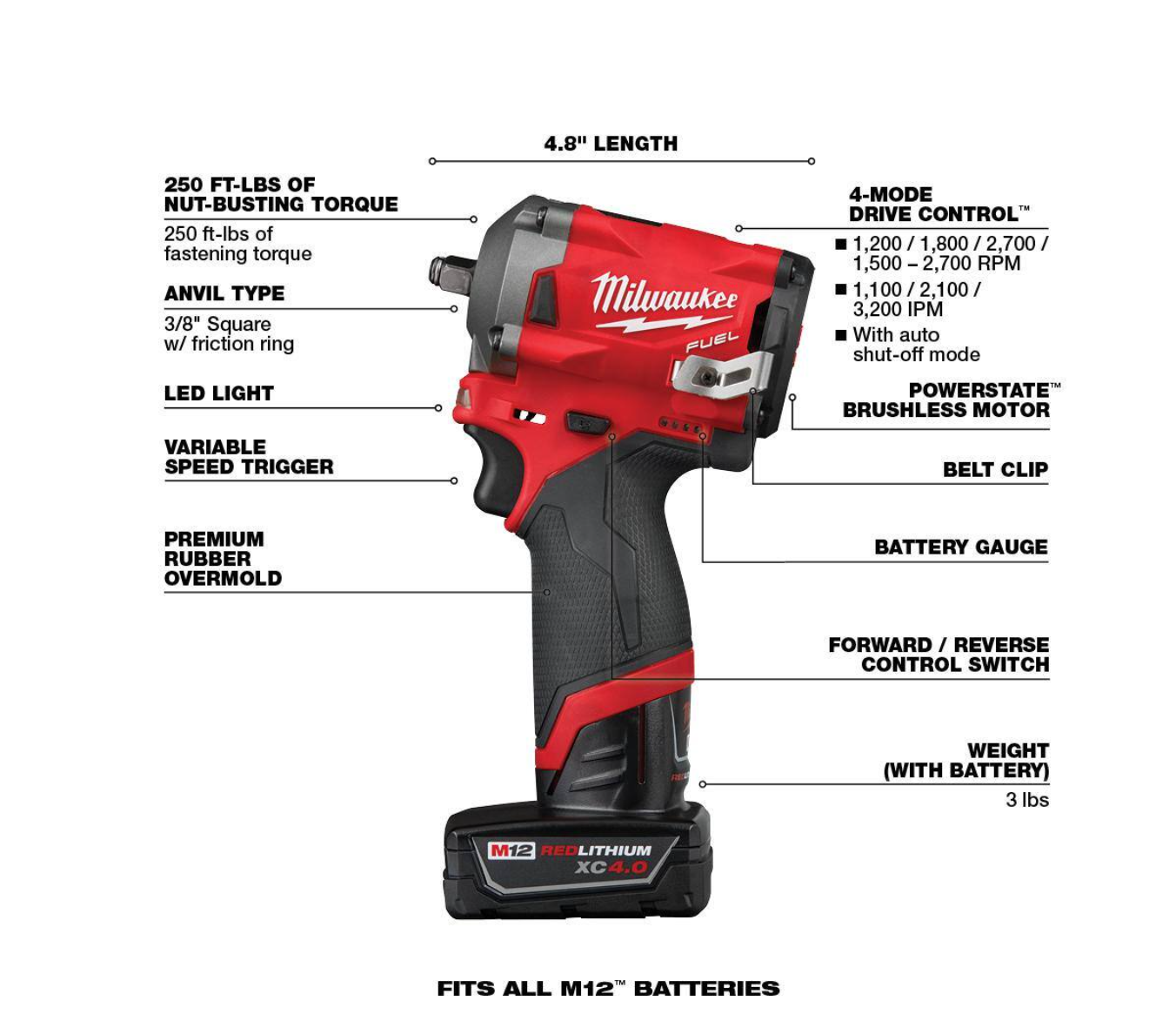 Milwaukee 2554-22-48-11-2440 M12 FUEL 12V Lithium-Ion Brushless Cordless Stubby 3/8 in. Impact Wrench Kit With M12 4.0Ah Battery