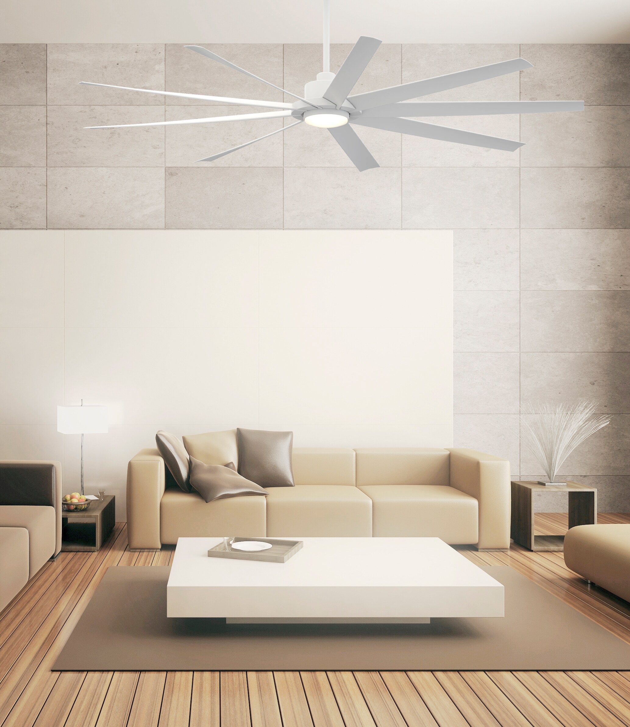 Fanimation Studio Collection EightyFour 84-in Matte White Color-changing LED Indoor/Outdoor Ceiling Fan with Light Remote (9-Blade)