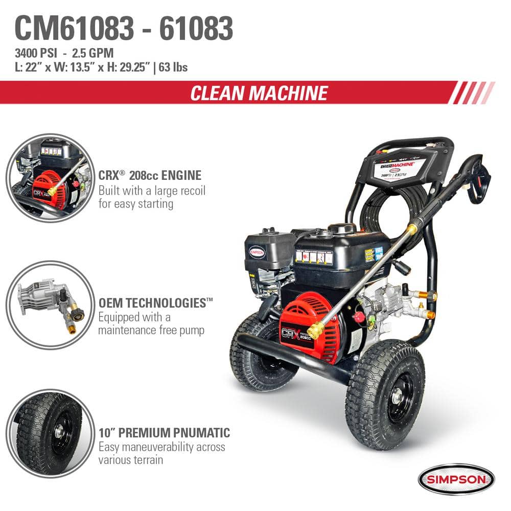 SIMPSON CM61083 Clean Machine 3400 PSI 2.5 GPM Gas Cold Water Pressure Washer with CRX 210 Engine