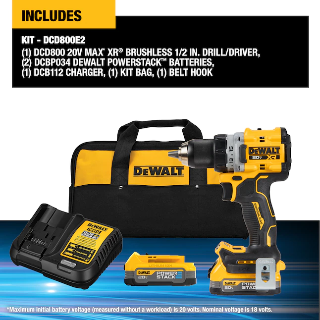 DEWALT DCD800E2 XR 20-XR 20volt Max 1/2-in Brushless Cordless Drill (2 Li-ion Batteries Included and Charger Included)