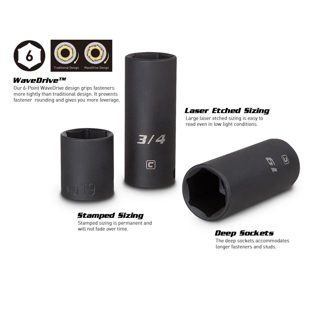 Capri Tools 48-Piece Standard (SAE) and Metric Combination 3/8-in Drive Set 6-Point Impact Socket Set