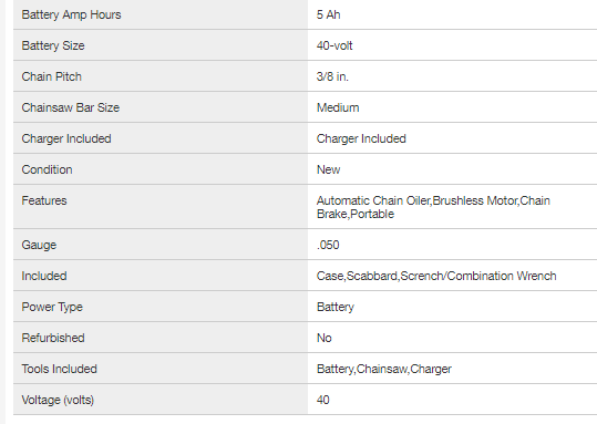 RYOBI RY40580 40V HP Brushless 18 in. Cordless Battery Chainsaw with 5.0 Ah Battery and Charger
