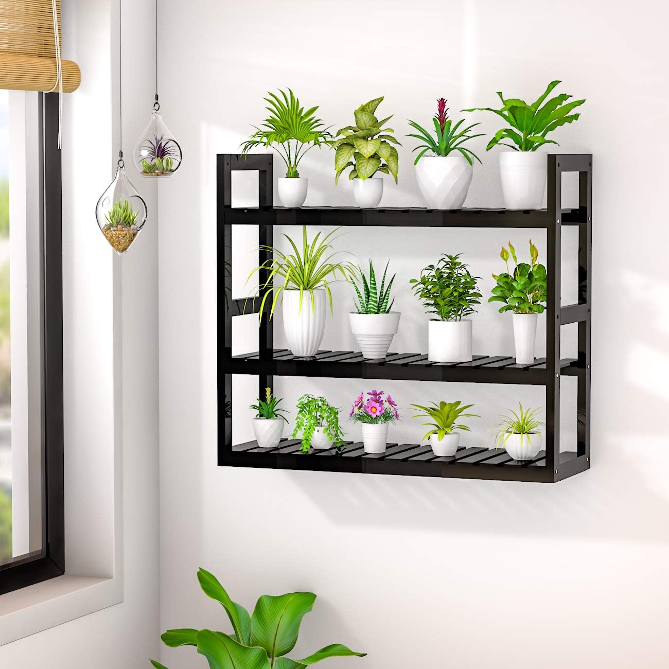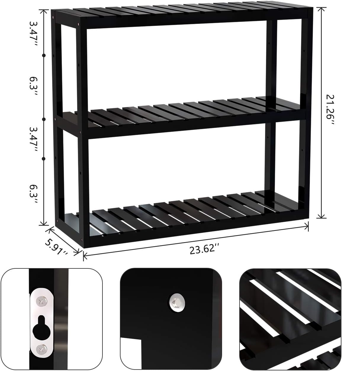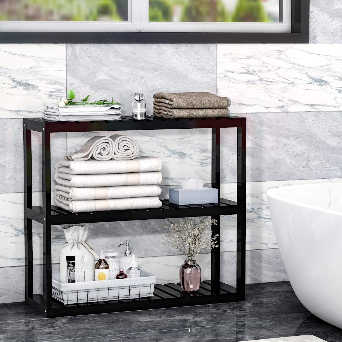 Bathroom Bamboo Shelf Organizer - 3 Tier Storage Shelf with Adjustable Wall Mounted Shelf Rack Over Toilet (Black)