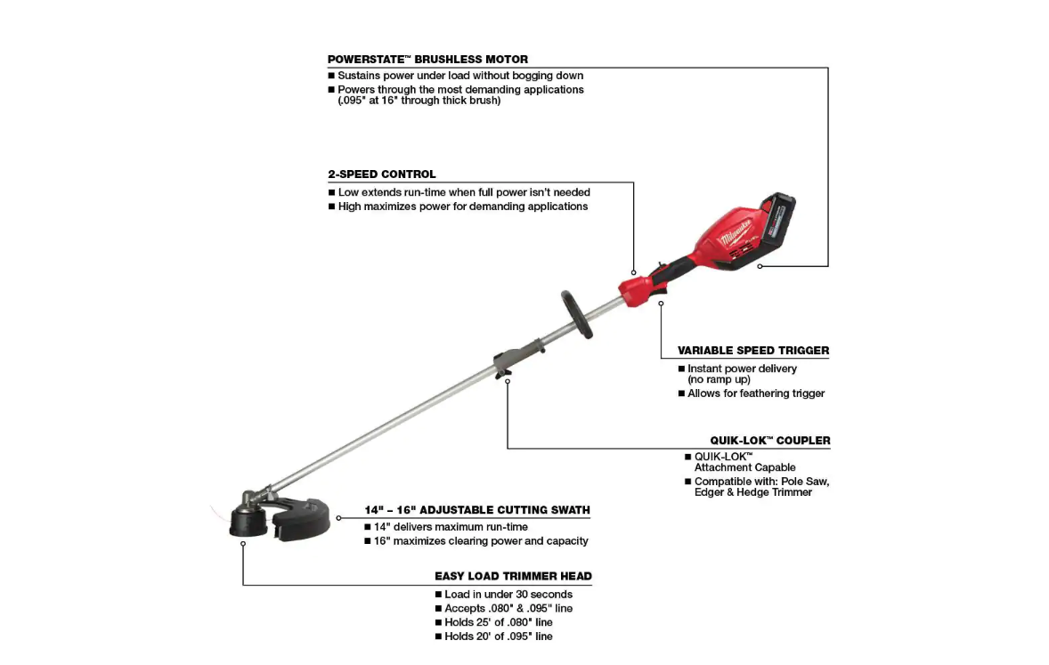 Milwaukee 2825-21ST M18 FUEL 18V Lithium-Ion Brushless Cordless String Trimmer with QUIK-LOK Attachment Capability and 8.0 Ah Battery